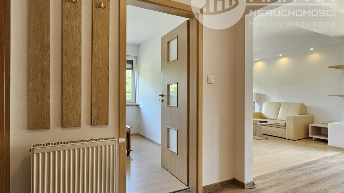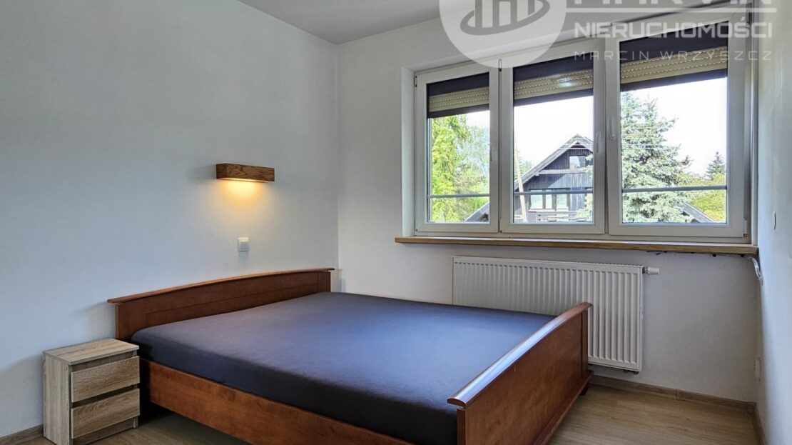 Sypialnia – ustawna, z dużą szafą przesuwną; możliwość pozostawienia łóżka i mebli.
