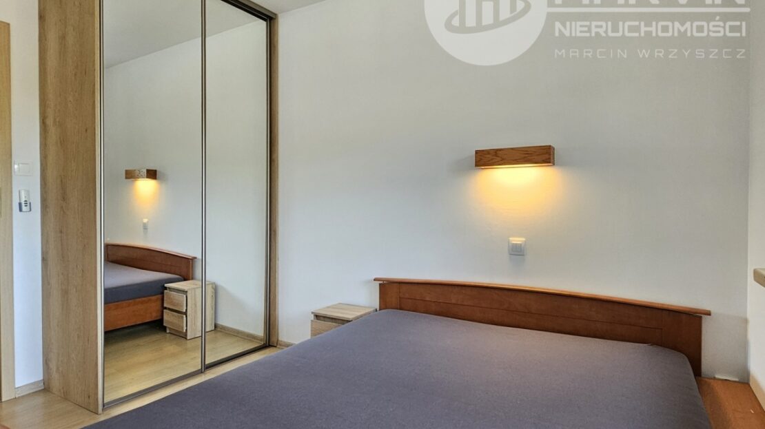 Sypialnia – ustawna, z dużą szafą przesuwną; możliwość pozostawienia łóżka i mebli.