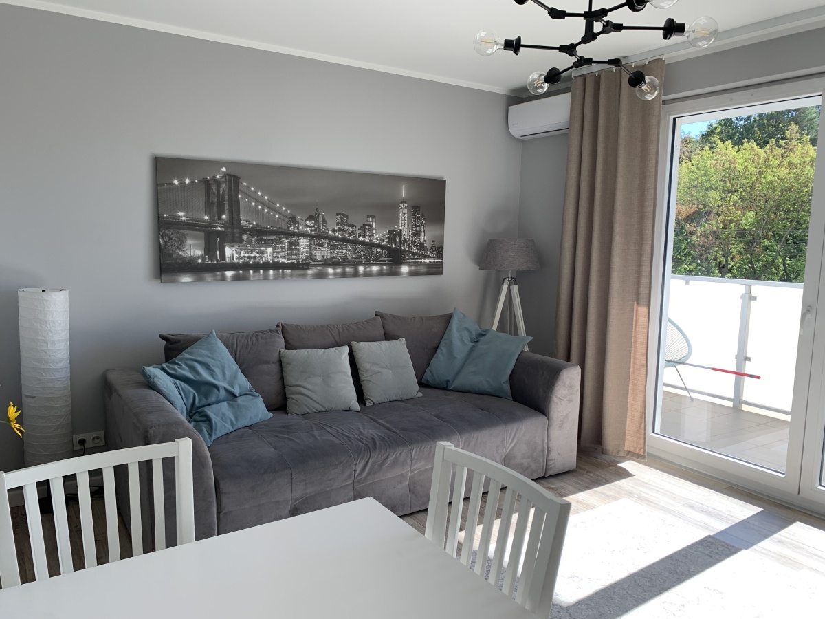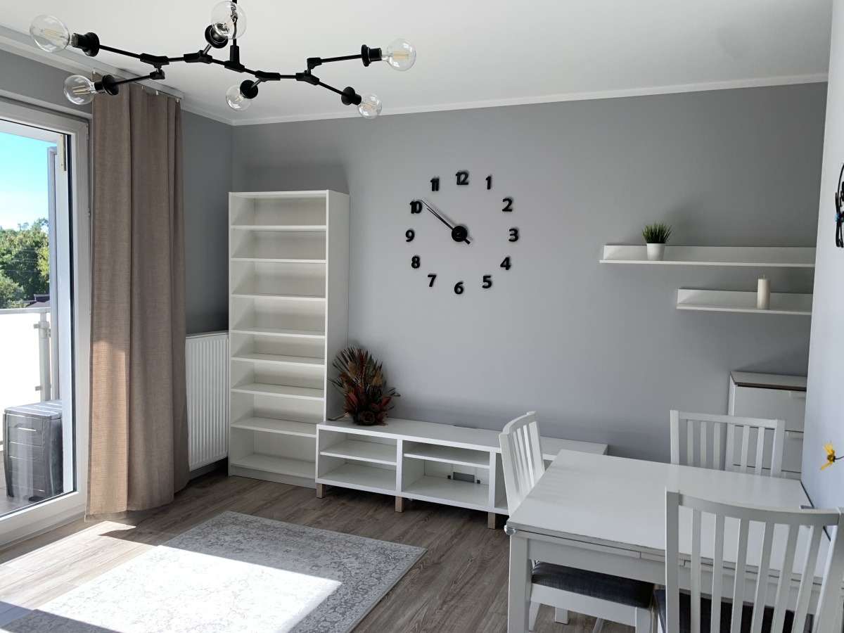 Wynajmę ciche, słoneczne i przytulne, dwupokojowe, umeblowane mieszkanie o powierzchni 45,90 m² wraz z balkonem (7,61 m2) i miejscem postojowym (26,73 m2) w garażu podziemnym.