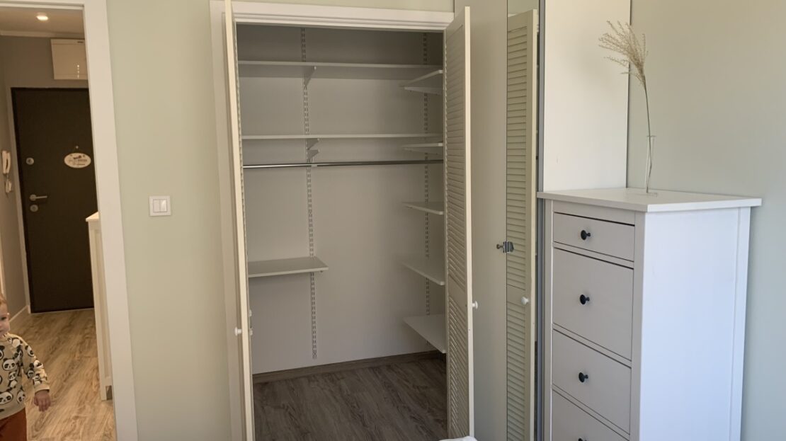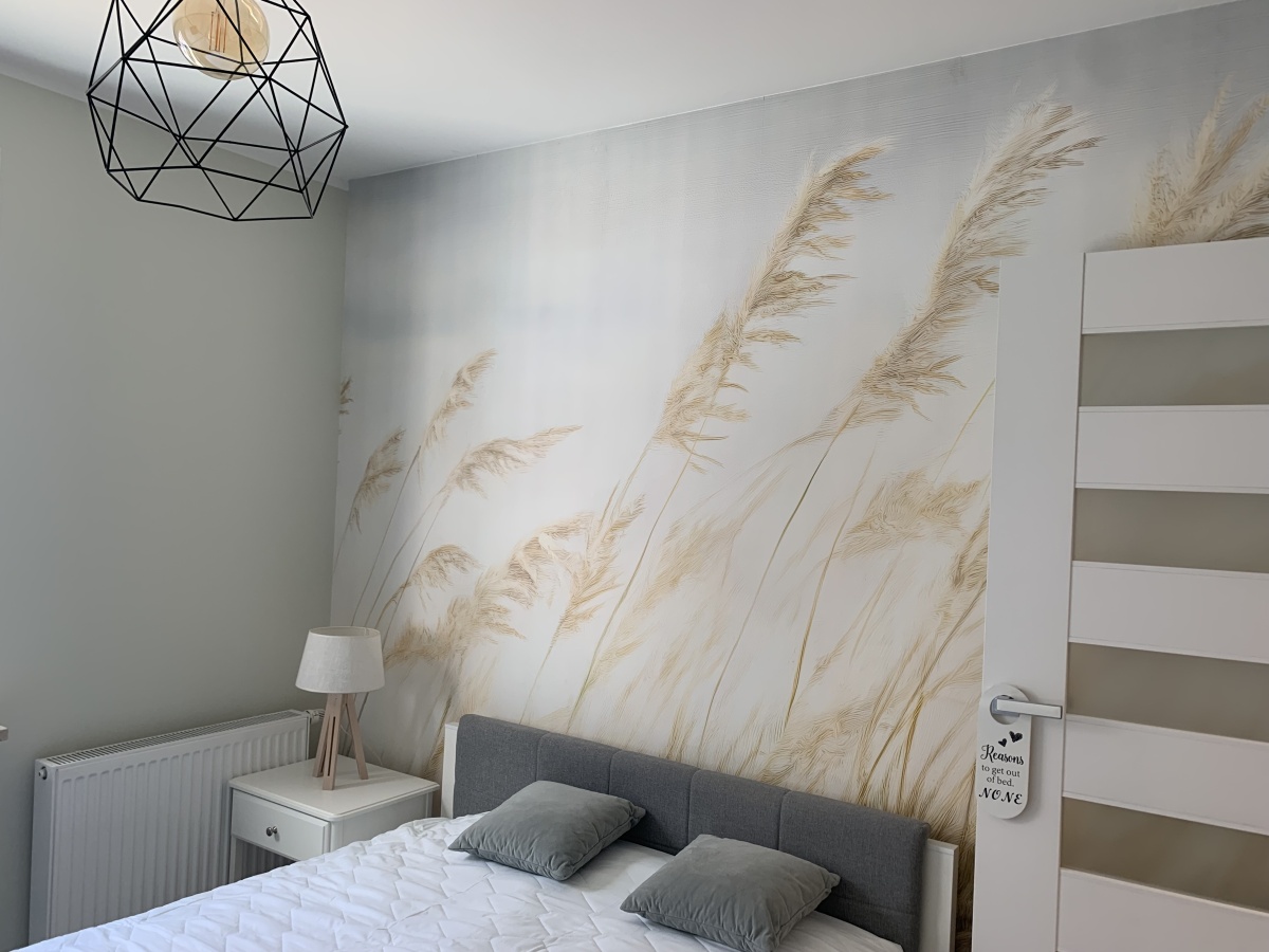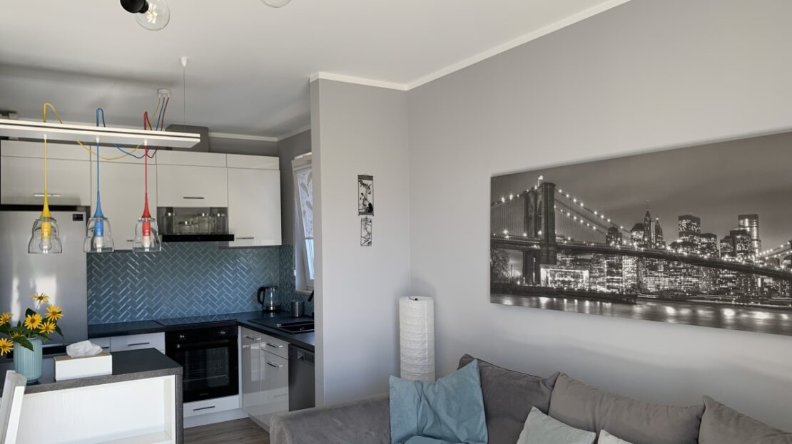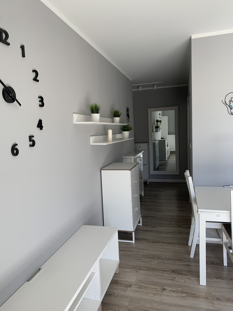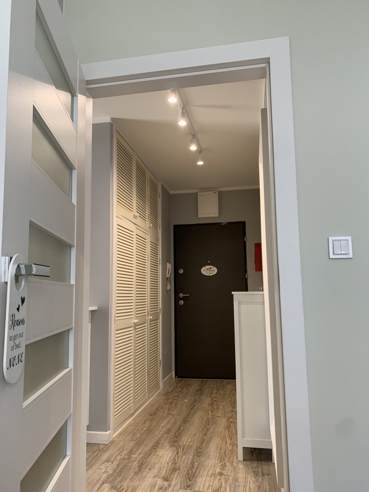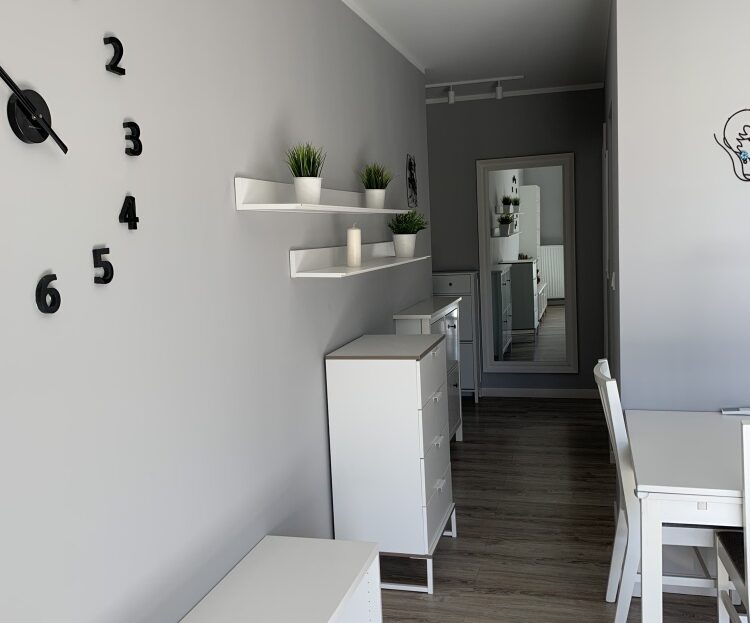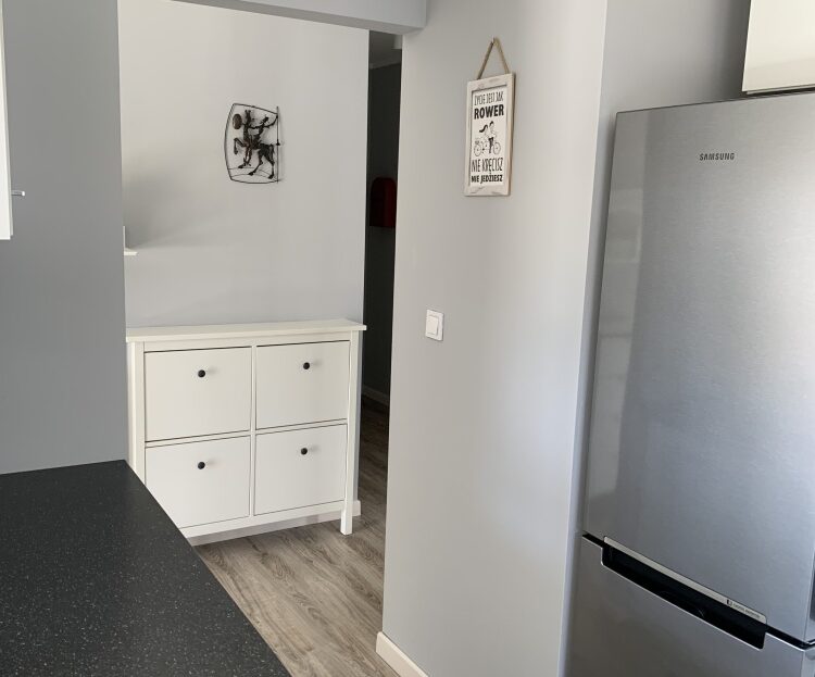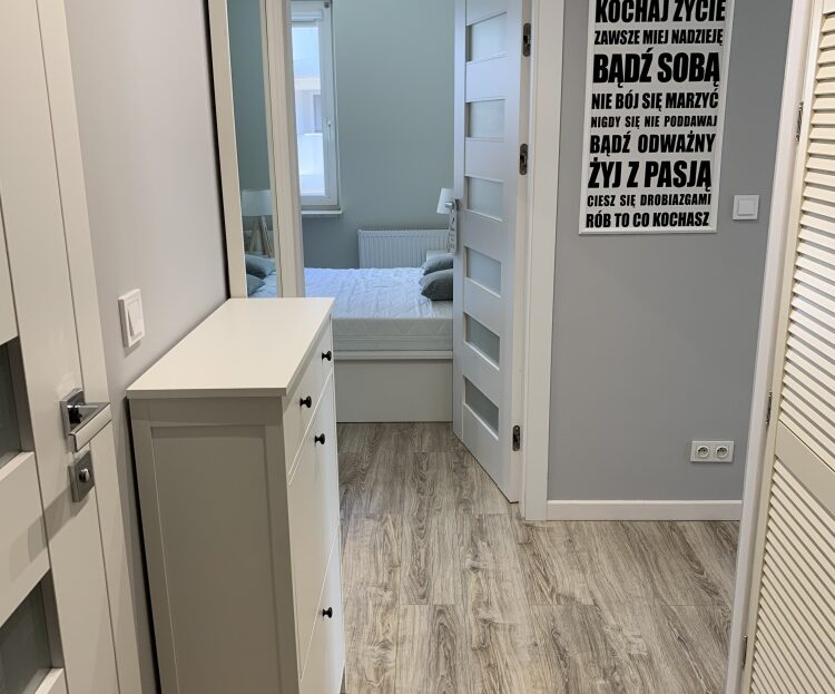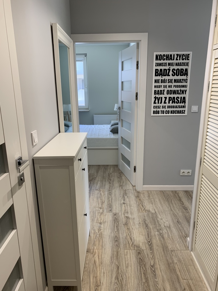 Zostało urządzone z dbałością o wygodę i funkcjonalność. Jest po remoncie, umeblowane i wyposażone w potrzebne sprzęty domowe (widoczne na zdjęciach). Jest dużo miejsca do przechowywania: duże szafy w przedpokoju wraz przestrzenią do schowania wysokich rzeczy (takich jak deska do prasowania, mop czy suszarka) i bardzo duża garderoba w sypialni.