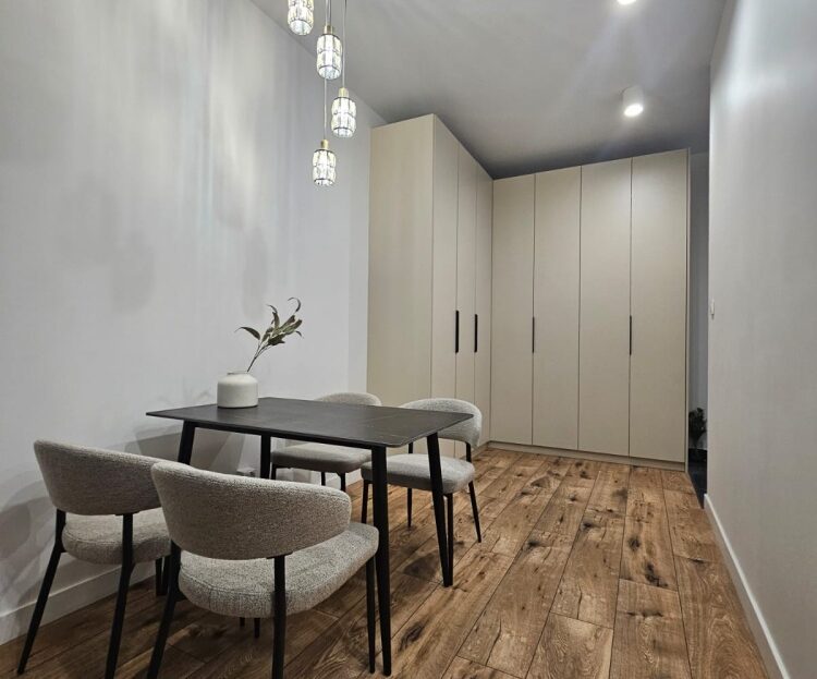 Na sprzedaż nowoczesny apartament w standardzie premium, w pełni wykończony pod klucz i gotowy do zamieszkania od zaraz. Wnętrze zaprojektowane spójnie i funkcjonalnie, z wykorzystaniem wysokiej jakości materiałów oraz mebli wykonywanych na wymiar.