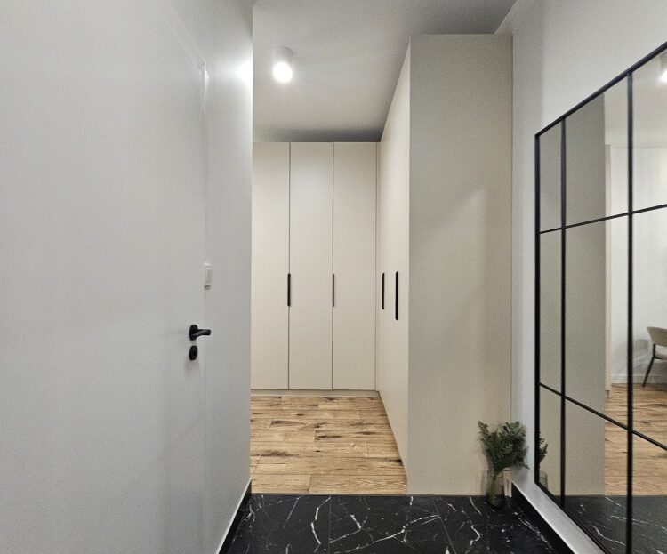 • przedpokój z bardzo dużą, pojemną szafą w zabudowie.