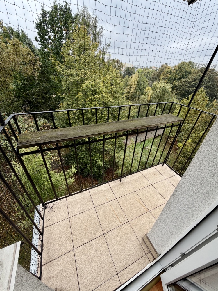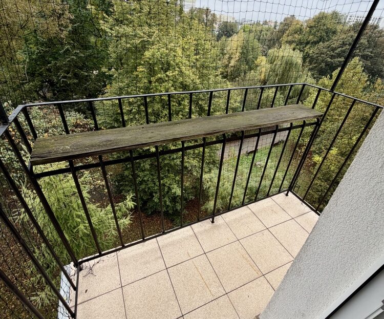 Cisza, dużo światła, Balkon z widokiem na zieleń