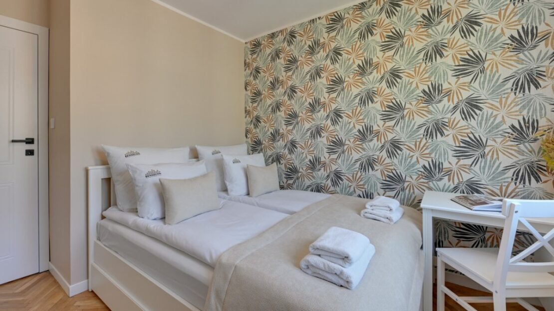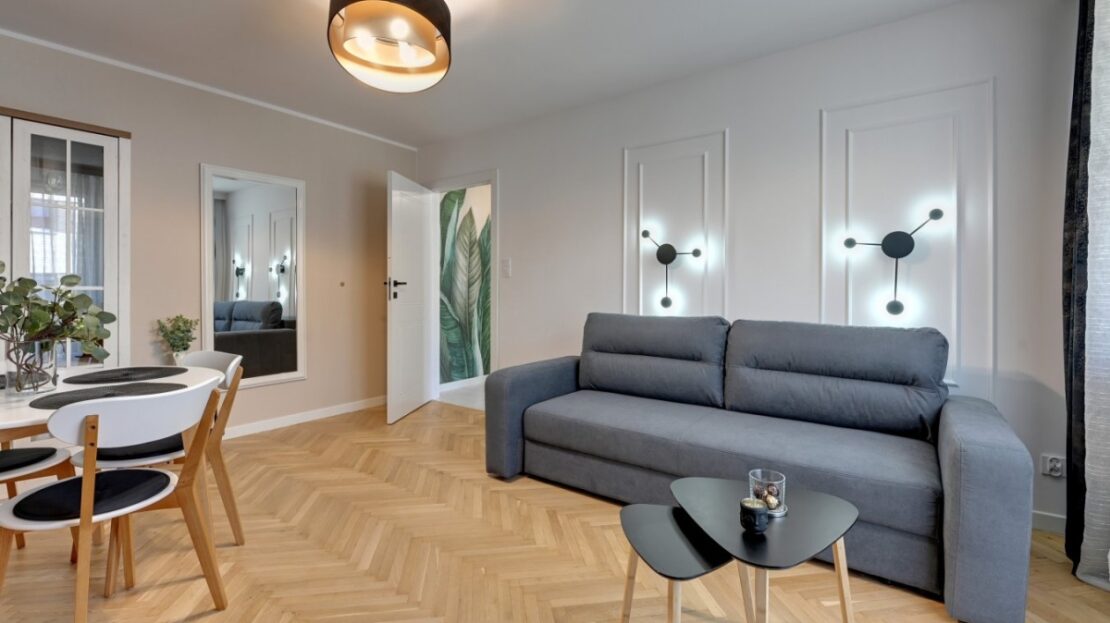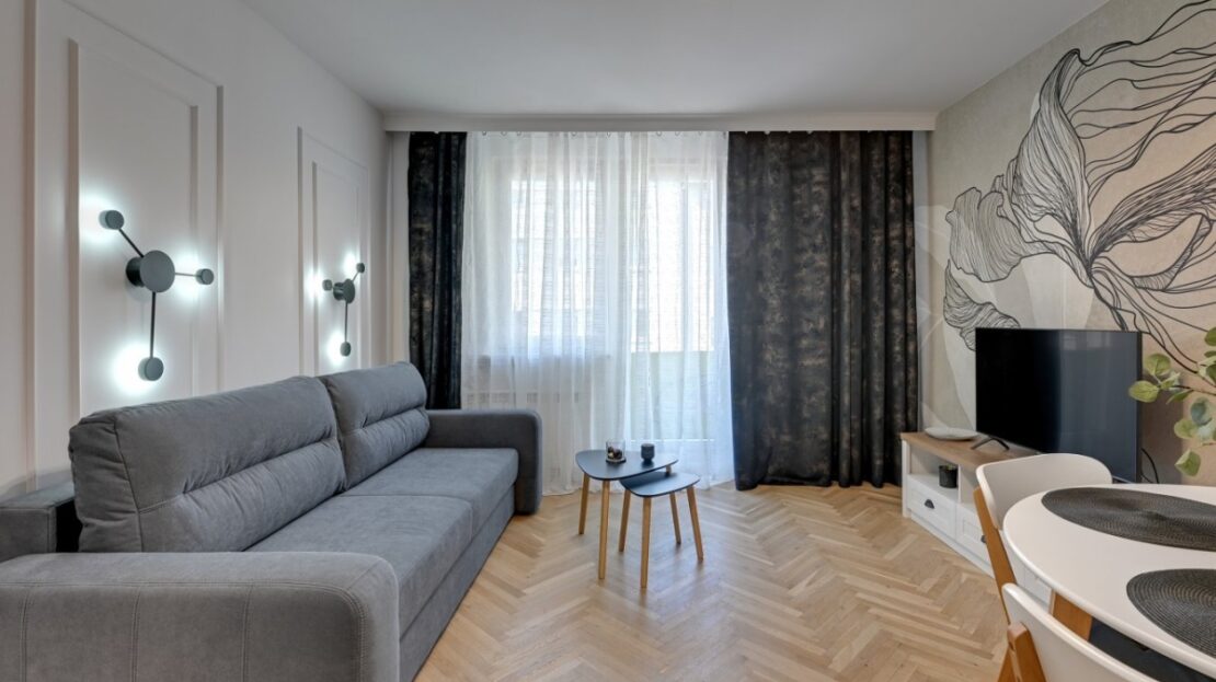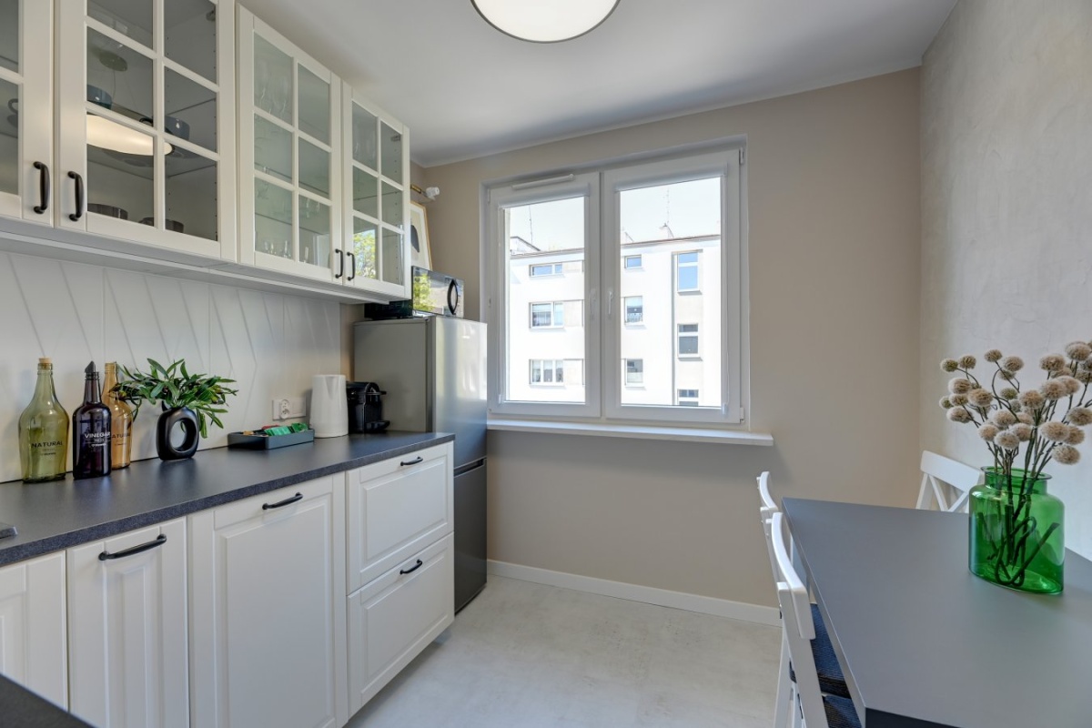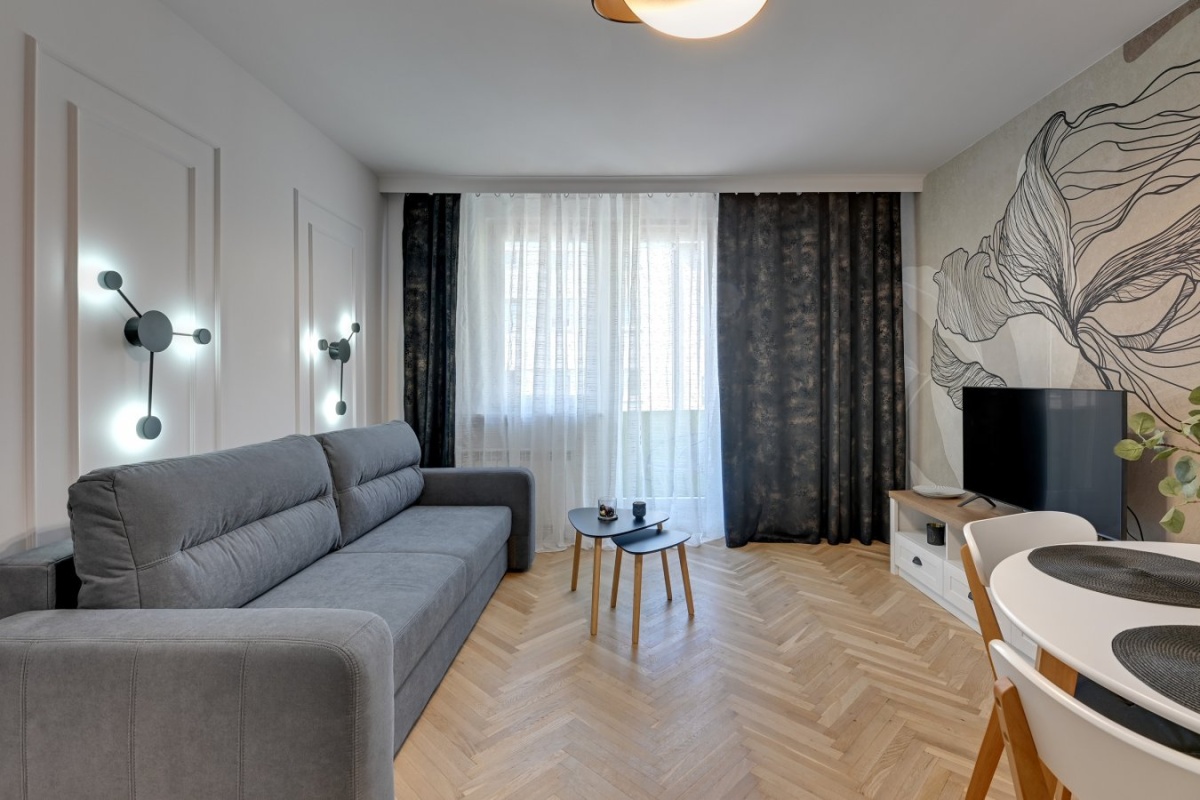 – 2pokoje: salon z wyjściem na balkon + sypialnia