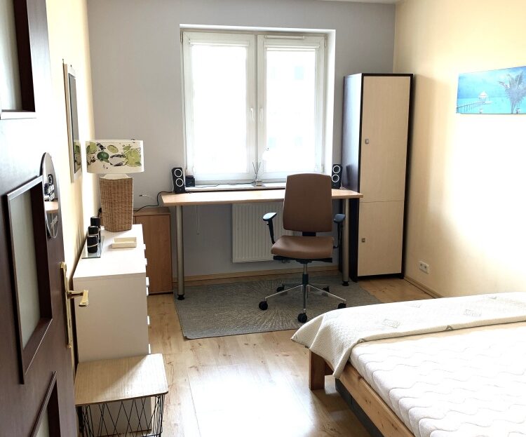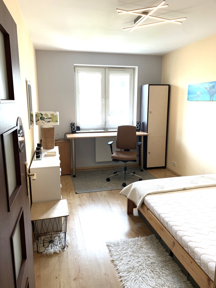 do wynajęcia nowoczesne mieszkanie na zamkniętym osiedlu SKOROSZE ul. Chełmońskiego 11 z całodobową ochroną , dwa oddzielne pokoje z oddzielną kuchnią . W pełni umeblowane i wyposażone w sprzęt AGD (zmywarka, lodówka, piekarnik, płyta elektryczna, pralka), jasne z widokiem -usytułowane od zachodu z klimatyzacją . Do dyspozycji mieszkańców boisko do gry .Miejsce postojowe na terenie całodobowo monitorowanego osiedla z bramą wjazdową na pilota .