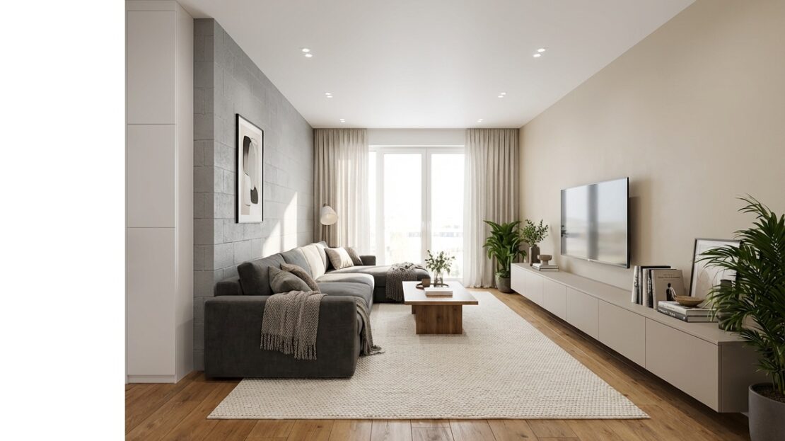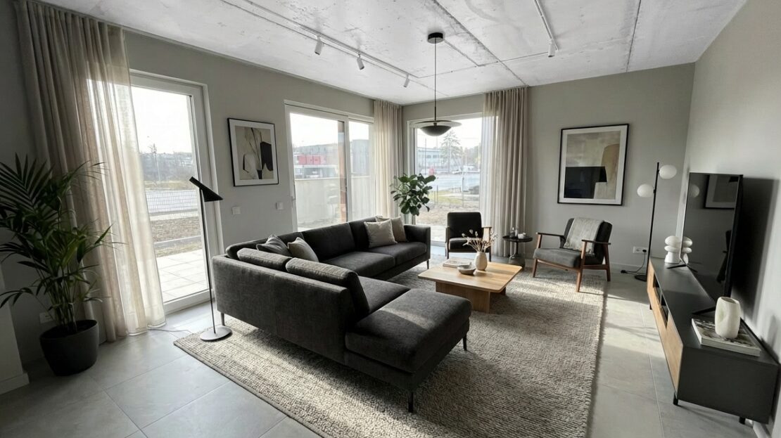To propozycja dla osób, które szukają nowoczesnego mieszkania w spokojnej lokalizacji, z komfortową strefą dzienną i przestrzenią do odpoczynku.