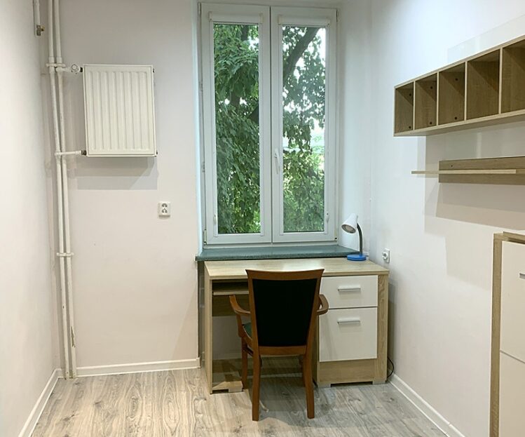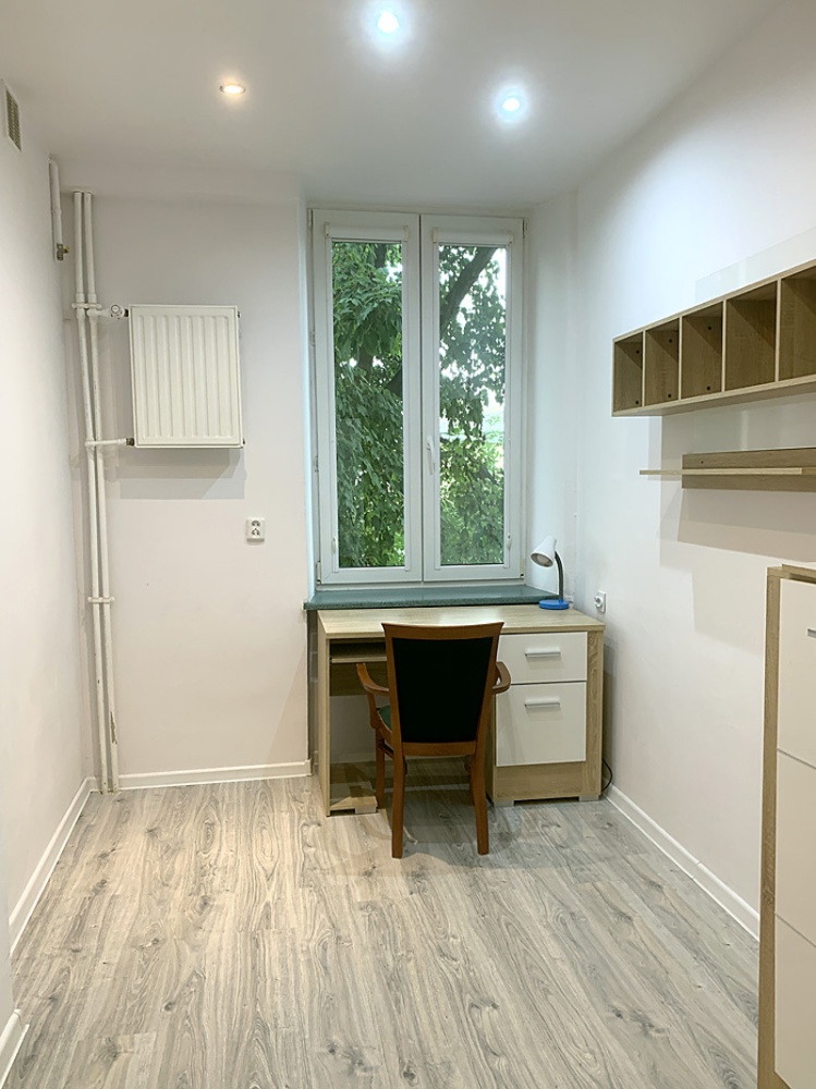 W niedawno wyremontowanym lokalu znajduje się salon z aneksem kuchennym (elektryczna płyta grzejna, zmywarka, piekarnik, okap), dwa pokoje, łazienka, oddzielna toaleta. Duży pokój od strony Al. Niepodległości posiada balkon. We wszystkich oknach zainstalowane są rolety. W łazience znajduje się wanna, pralka, dwie szafki. W korytarzu zabudowano dwie szafy wnękowe i duży pawlacz. Meble w pokojach jak na zdjęciach. Wysokie pomieszczenia – 3 m.