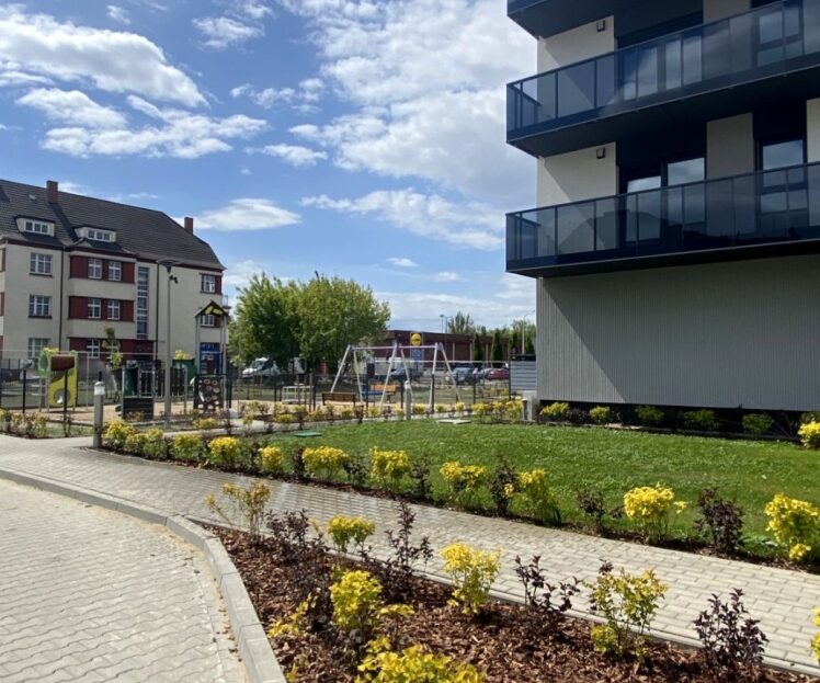 Lokal mieszkalny mieści się w 4 piętrowym budynku, 2 klatkowym z miejscami parkingowymi oraz garażami podziemnymi.