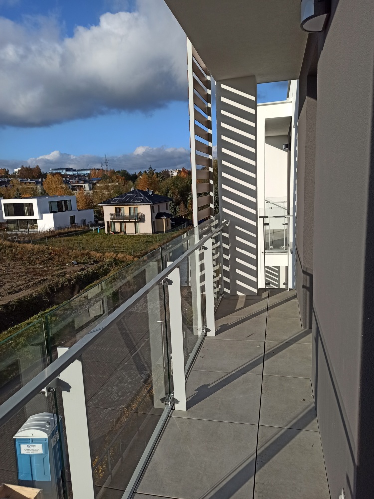 Dwóch balkonów, dużego 15,5 mkw i małego 5 mkw. Każdy pokój ma wyjście na balkon!!!