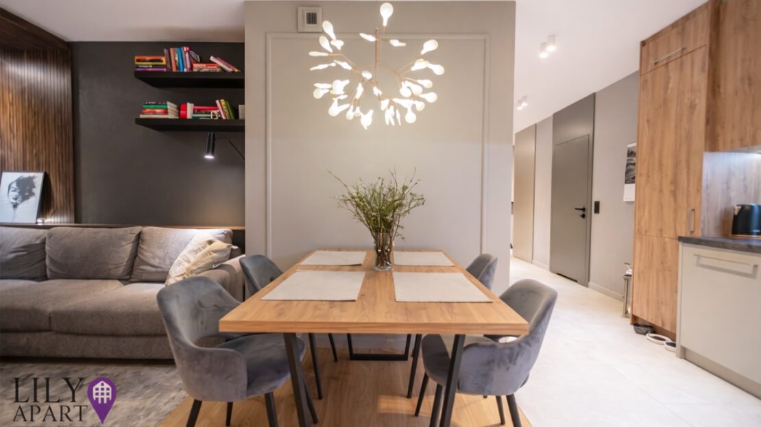 Nowocześnie urządzone, bardzo funkcjonalne, w pełni umeblowane, przestronne 3-pokojowe mieszkanie (69 metrów kwadratowych), z dużym balkonem (loggia), zlokalizowane na 8 piętrze w inwestycji Studio Morena przy ul. Franciszka Rakoczego w Gdańsku. Mieszkanie wykończone materiałami wysokiej jakości przez projektantów wnętrz. Zaprojektowane tak, by funkcjonalność była jak najwyższa, jednocześnie z dbałością o detale. Mieszkanie jest klimatyzowane, a z balkonu jest widok na najpiękniejsze zachody słońca w Trójmieście. Mieszkanie było urządzane dla i pod właścicieli. W sypialniach i salonie położona jest podłoga z drewna olejowanego. Naturalne drewno jest przyjemne w dotyku i nadaje ciepła wnętrzu.