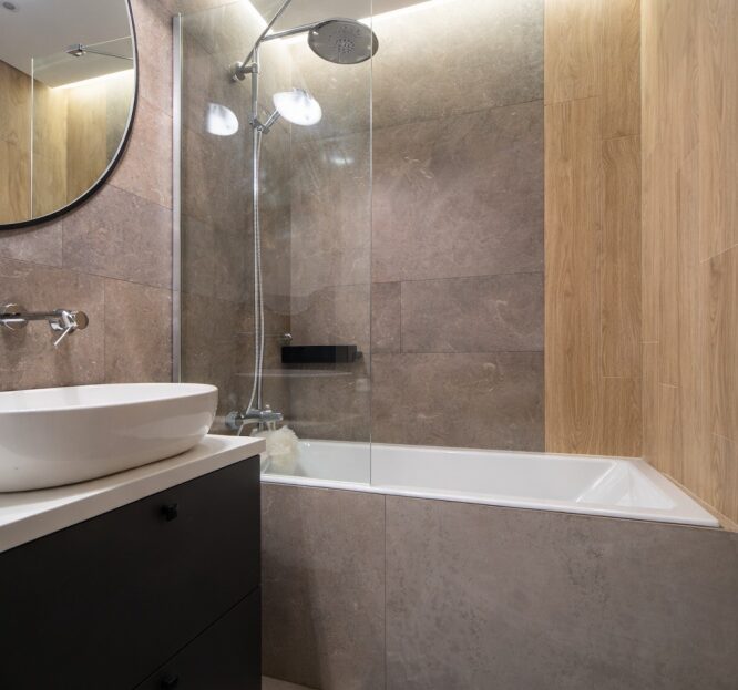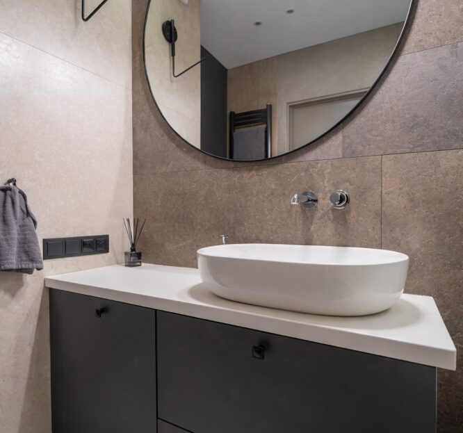 Duży kinkiet nad lustrem jako dodatkowe oświetlenie