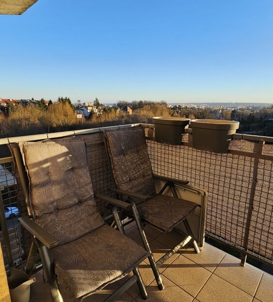 Z balkonu roztacza się przepiękny, panoramiczny widok na Szczecin, który zachwyca o każdej porze roku i dnia.