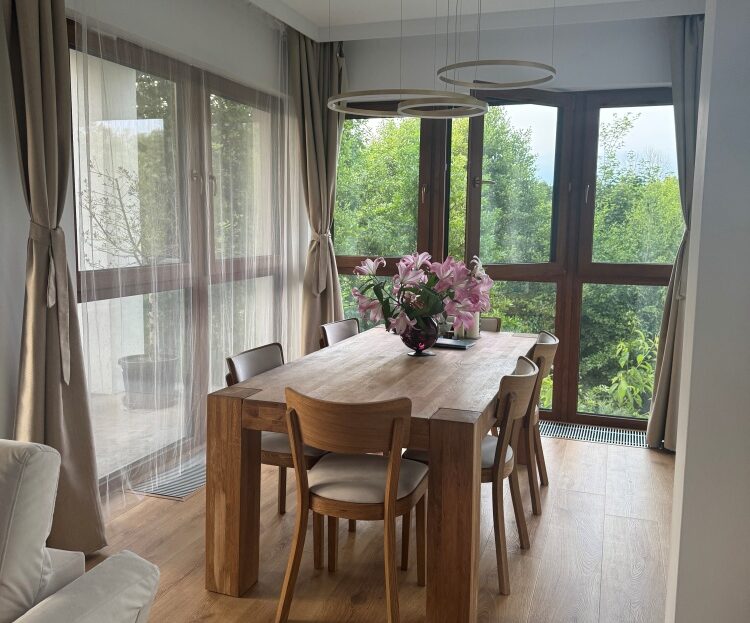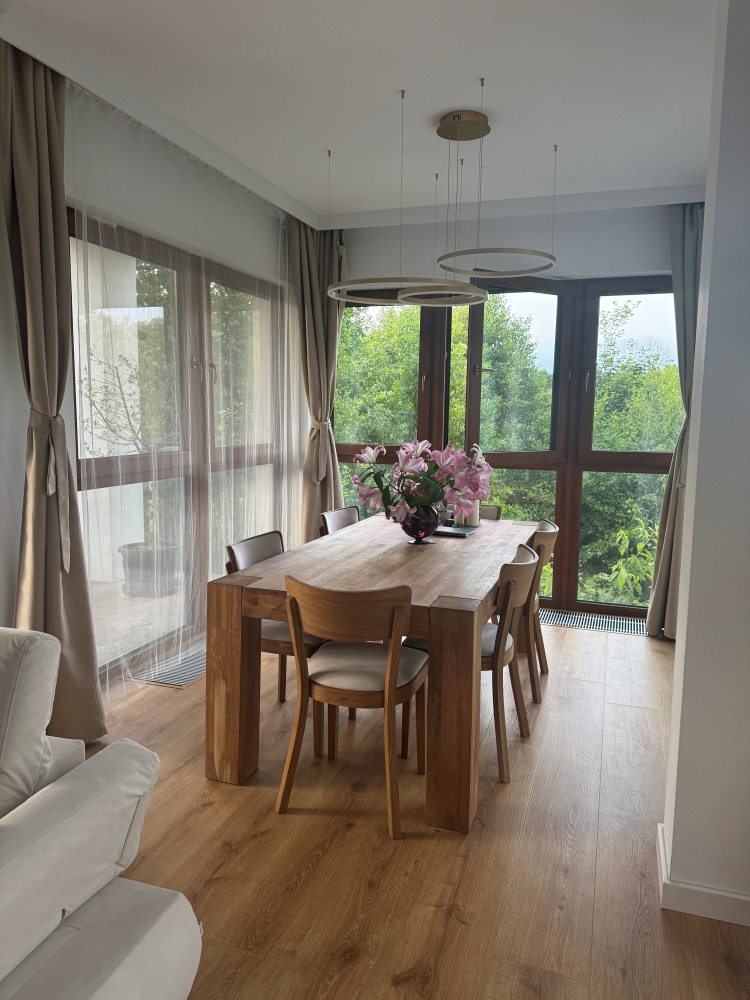 Oferowane mieszkanie jest najbardziej wysunięte w głąb parku, widok z jadalni jest wyjątkowy – wśród drzew parku.