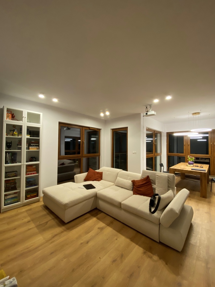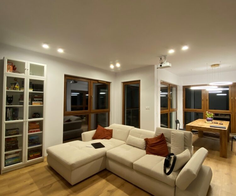 Jest to przestronny, eksluzywny apartament, bogato doświetlony dzięki zastosowaniu dużej ilości wysokich okien jak i również punktów oświetleniowych wykonanych pod indywidualne zamówienie.