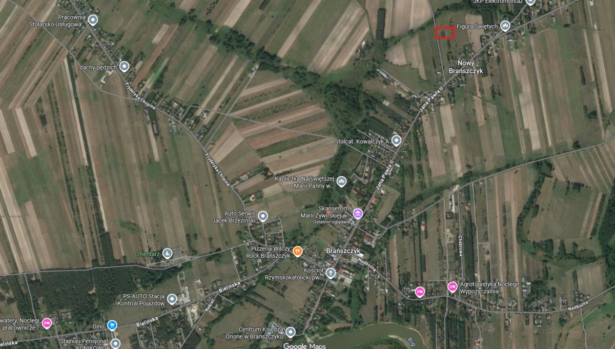 Brańszczyk (ok. 1km) – bezpośrednie sąsiedztwo, szkoły, kościoła i podstawowej infrastruktury:
