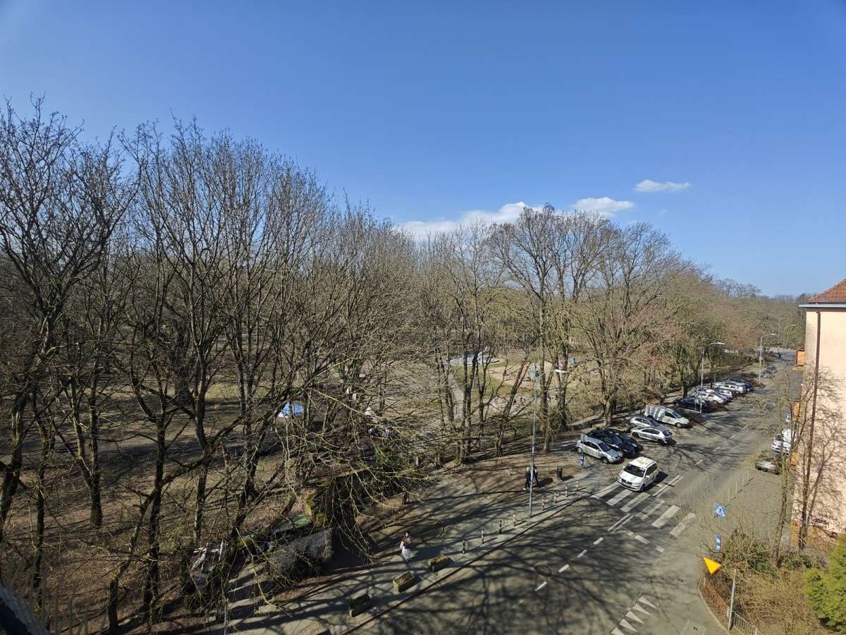 Sypialnia: Jasna i przestronna, z wyjściem na balkon, z którego roztacza się piękny widok na park – idealne miejsce na relaks.