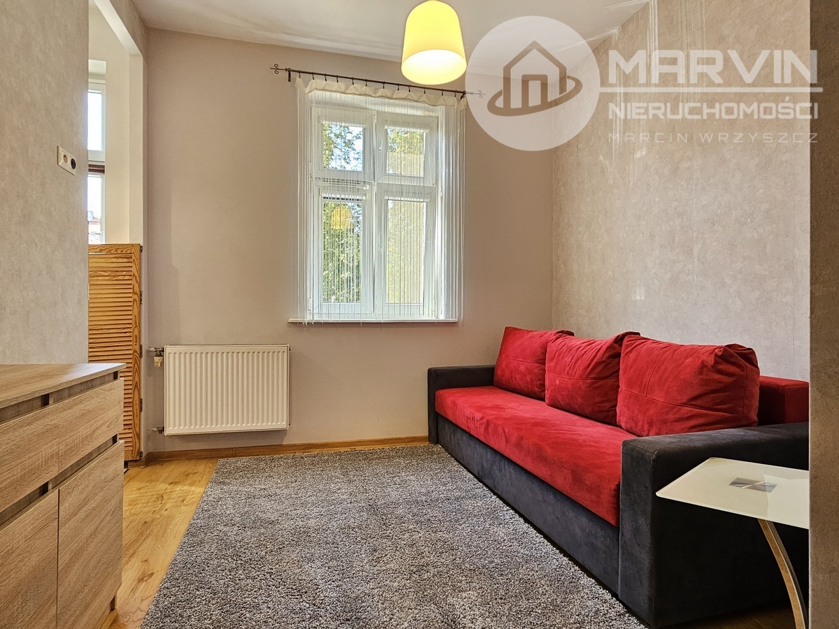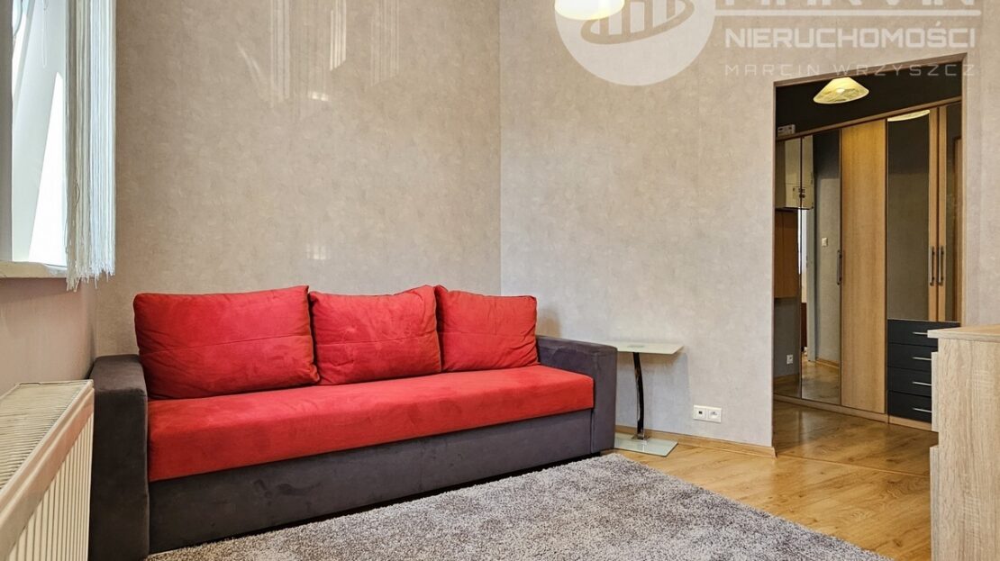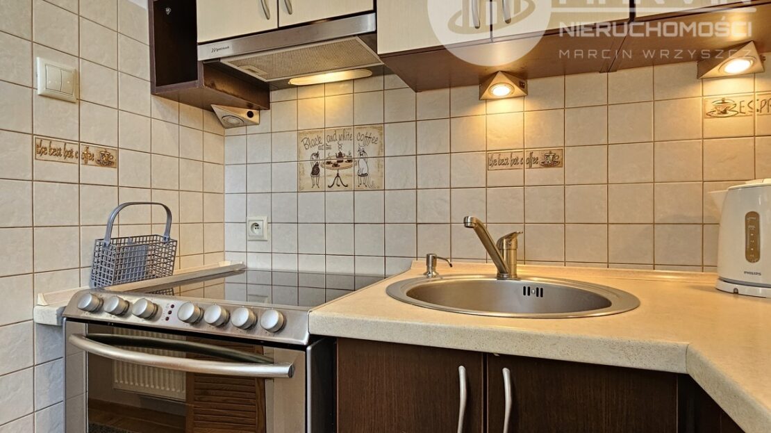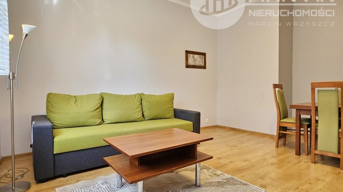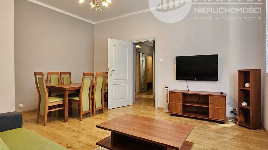Na 44m2 składają się: umeblowany salon, pokój z wejściem do wyposażonej kuchni, wyposażona łazienka i korytarz z wieloma szafami.