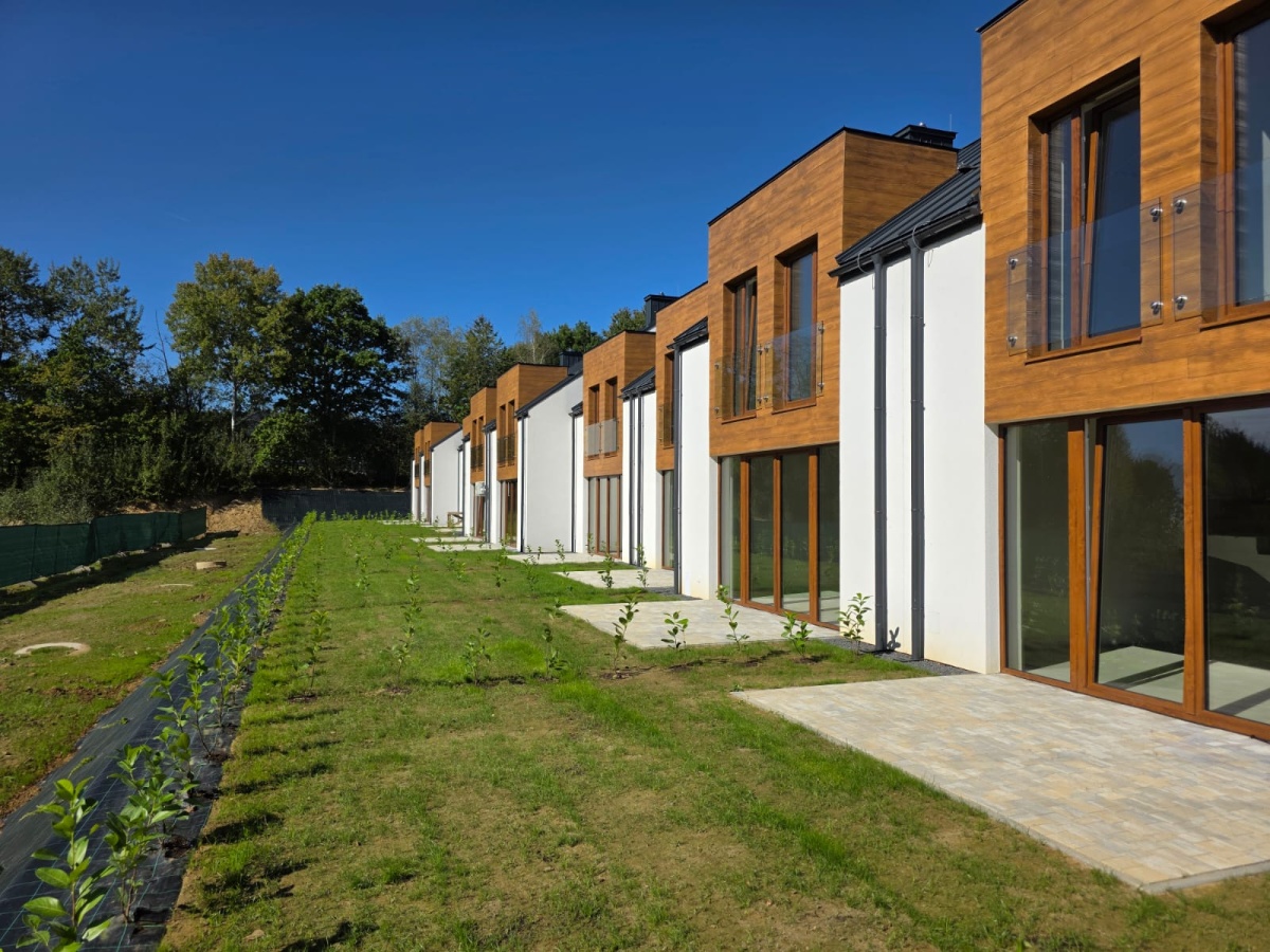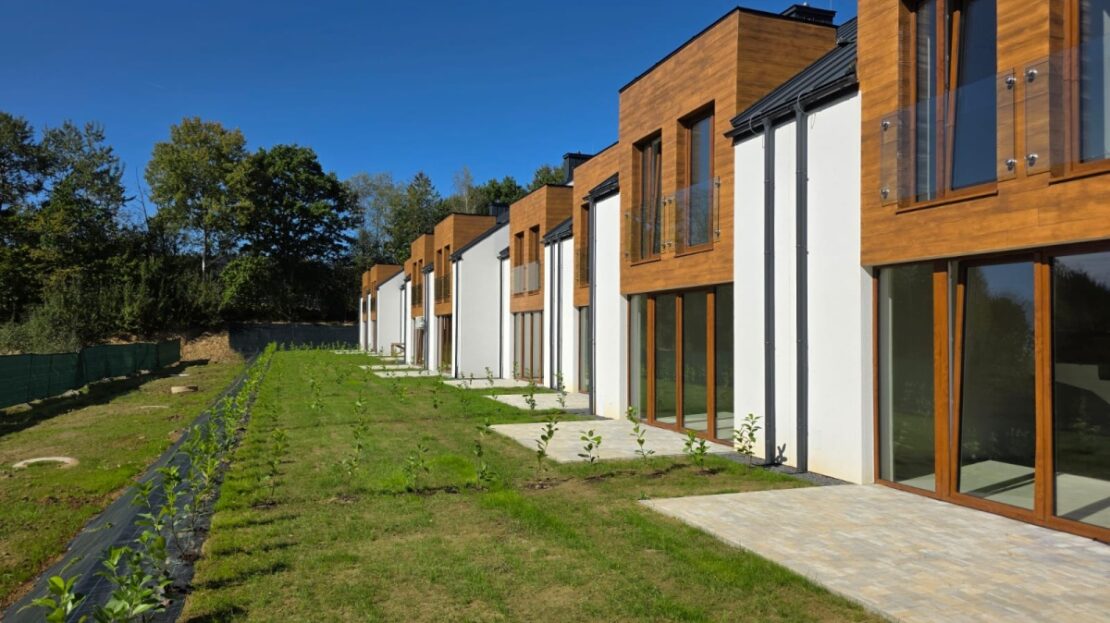 Osiedle Zielona Stróżówka to połączenie spokoju z wygodą. Nowoczesna architektura, spójny wygląd osiedla i bliskość natury.