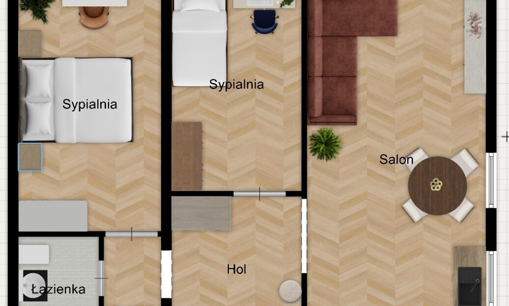 -przestrzenny salon (22m2) z dużym aneksem kuchennym – istnieje opcja oddzielenia kuchni od salonu, w pomieszczeniu aż 3 okna