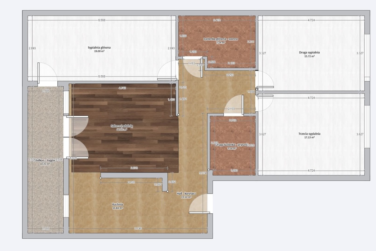 Układ: 4 pokoje, w tym przestronny salon połączony z kuchnią,