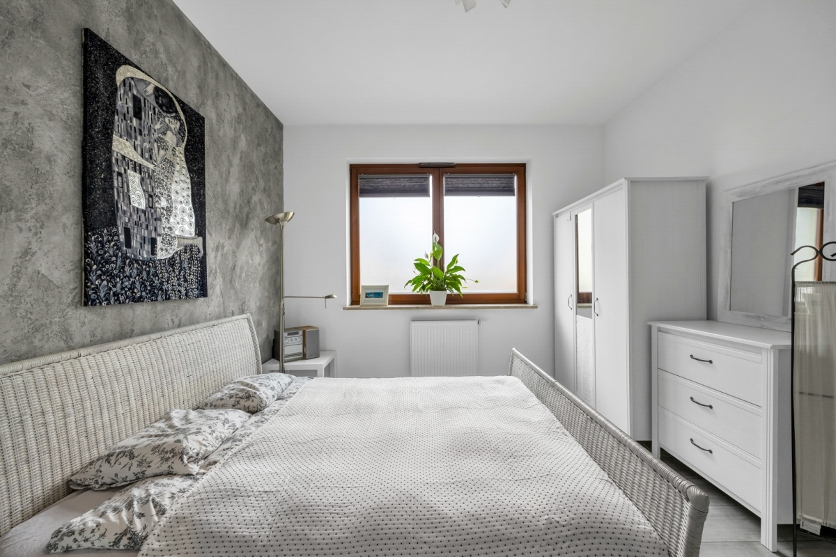 Okna drewniane z ekspozycją dwustronną: wschód: patio – 2 sypialnie (cisza i spokój) i południowo-zachodnią: kuchnia, salon i duża sypialnia – dobra ekspozycja naturalnego światła – okna wychodzą na zewnętrzną część osiedla.