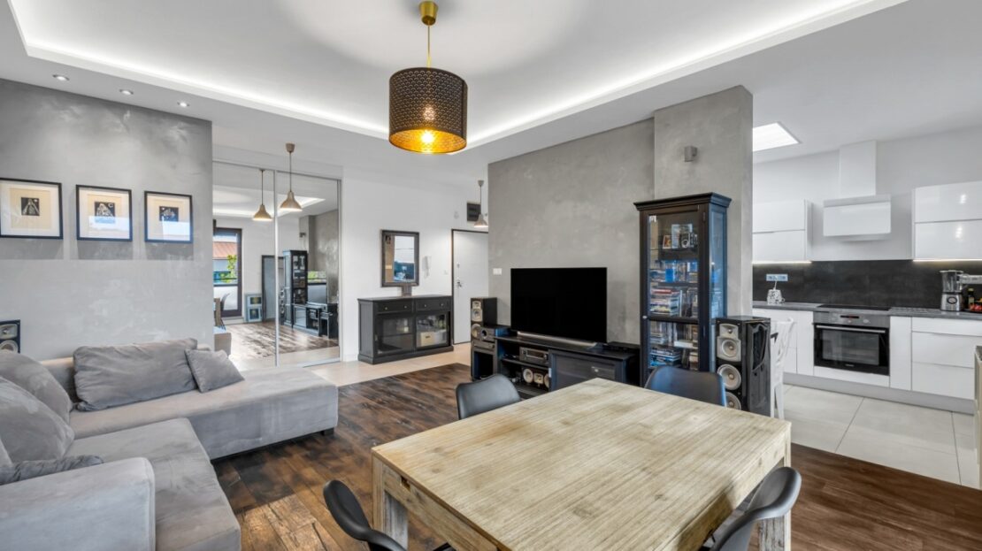 Mieszkanie wykończone w stylu loftowym z dbałością o każdy detal, przy użyciu materiałów wysokiej jakości: