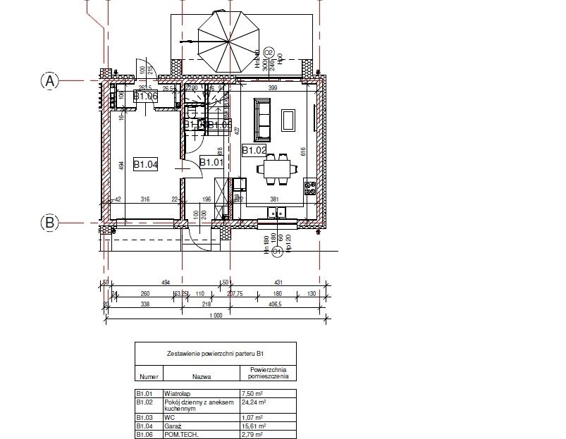 Garaż w bryle budynku,