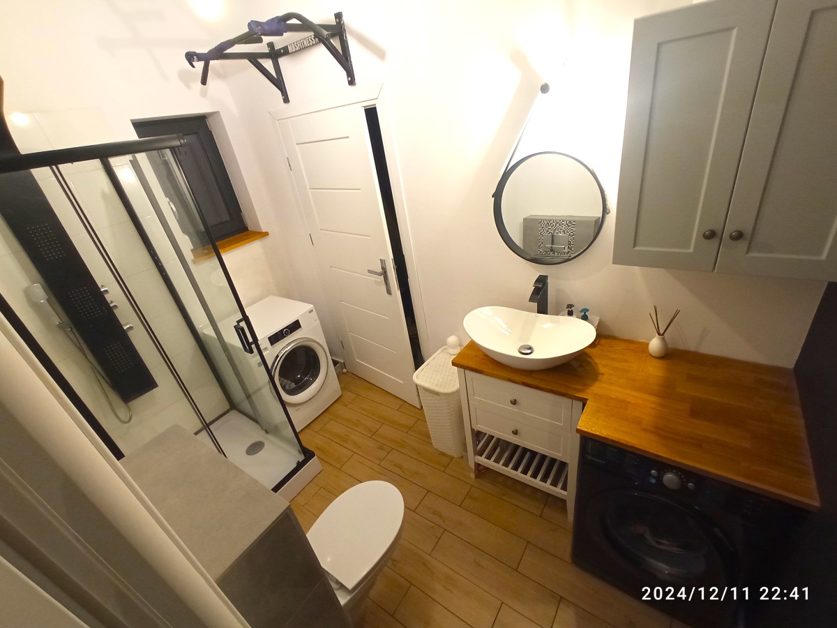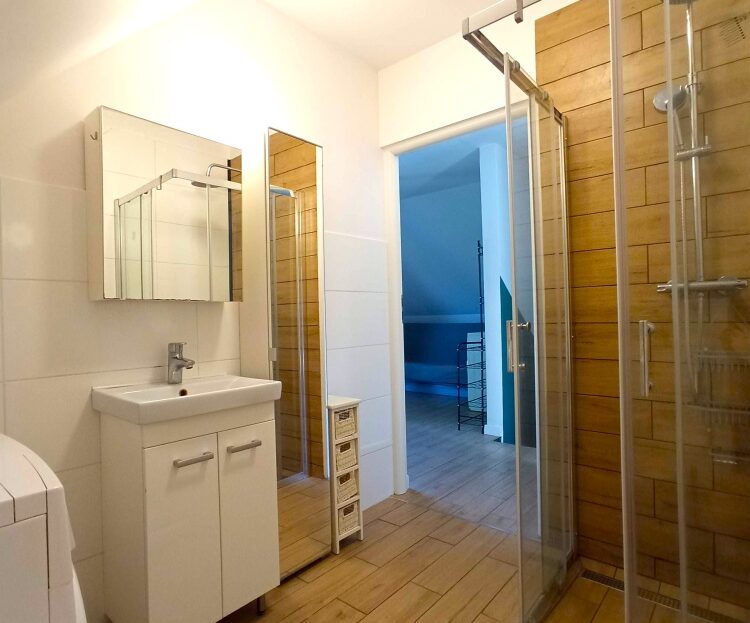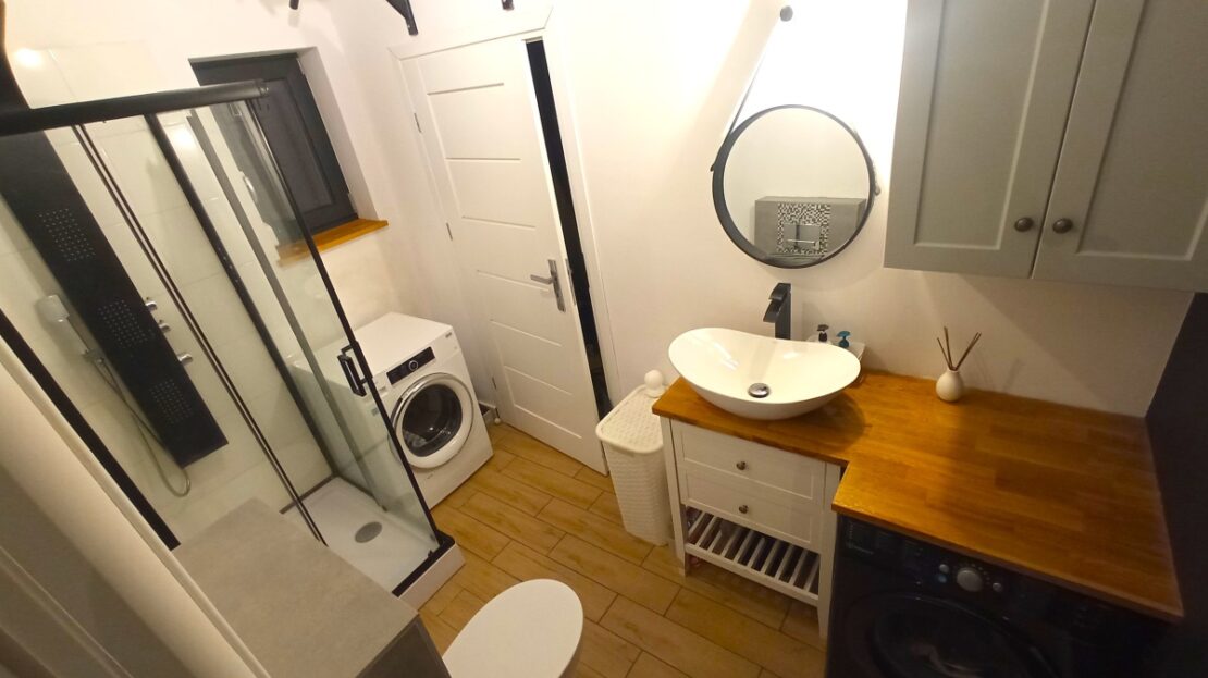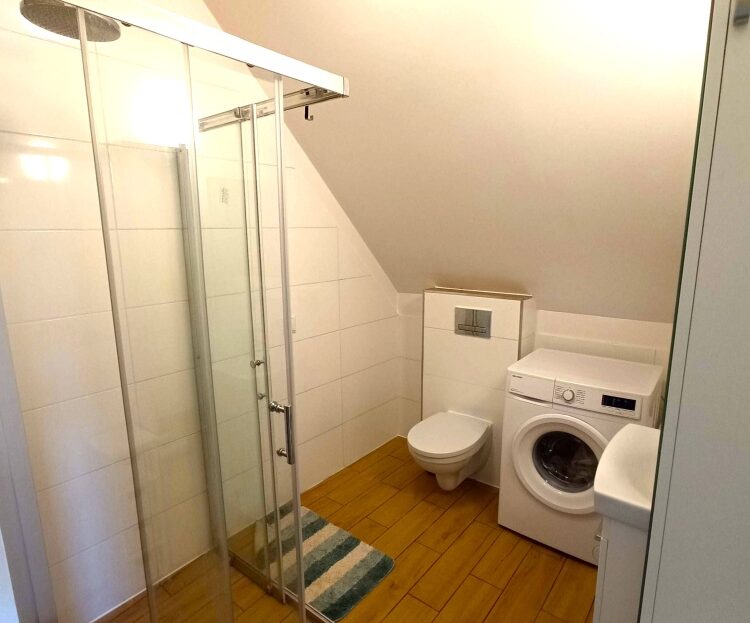 Na górze łazienka i 3 pokoje – same klitki. Już naprawdę lepsza ta kawalerka w Warszawie.