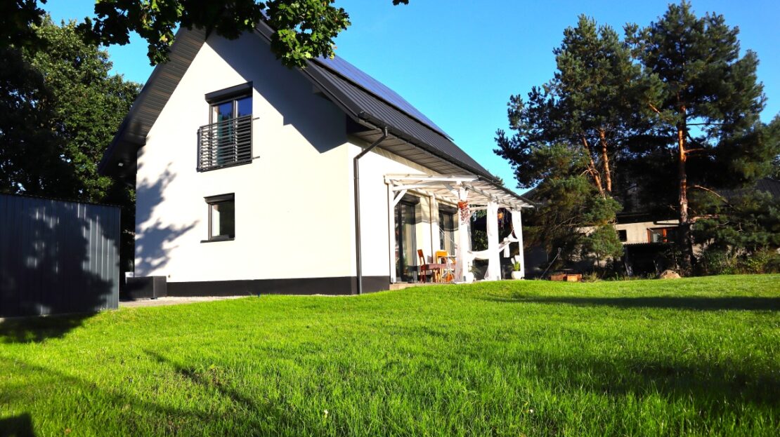 Ogrzewanie? Gruntowa pompa ciepła. Kto by pomyślał – jakieś nowe technologie, pewnie zimą nie daje rady, a jak nie ma prądu to nawet drewnem się nie rozpali. Jak jest piec taki jak trzeba, na węgiel, to chociaż człowiek pewny co ma, bo przecież sam te tony węgla do piwnicy przerzuca. A i węgiel tani, nie to co prąd.