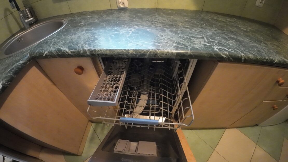 Oddzielna kuchnia z oknem, wyposażona w kuchenkę, lodówkę i zmywarkę Bosch (sprzęty sprawne)