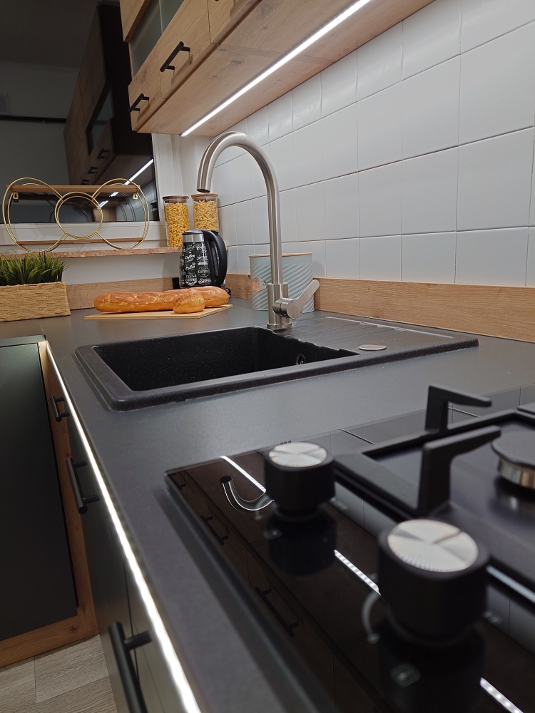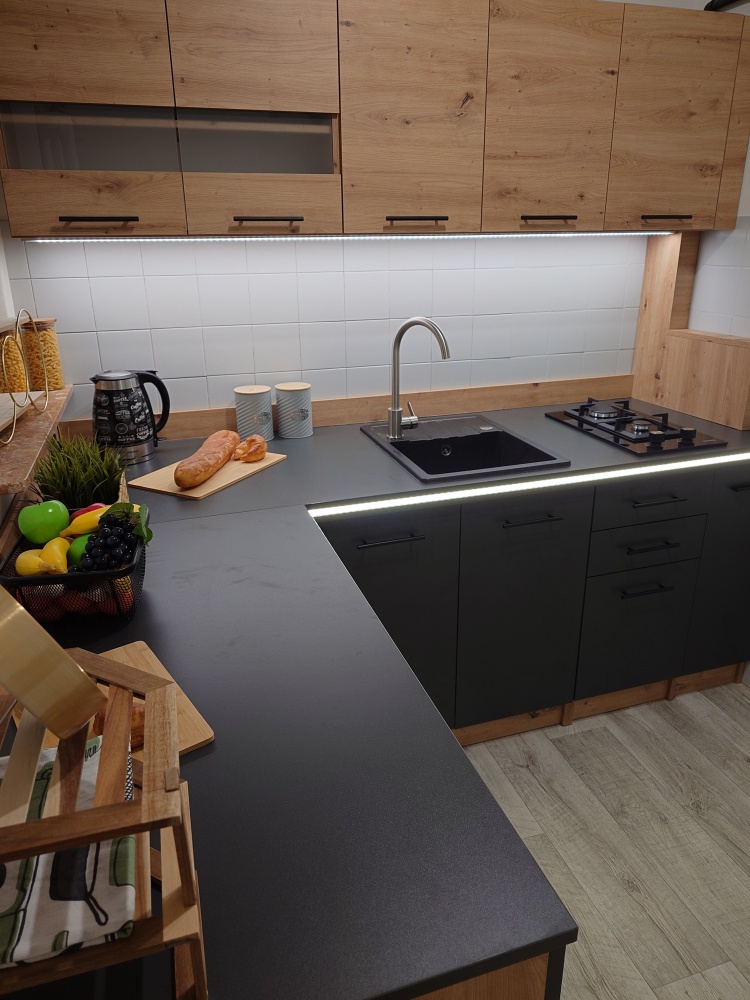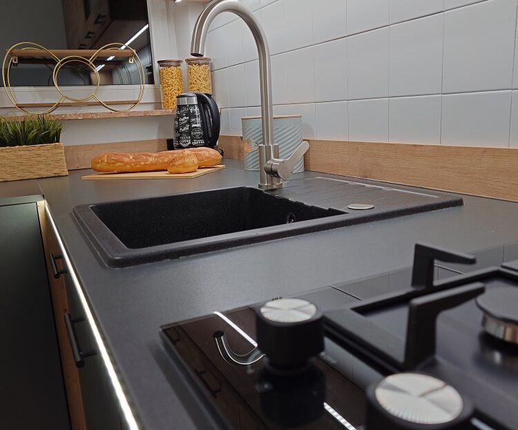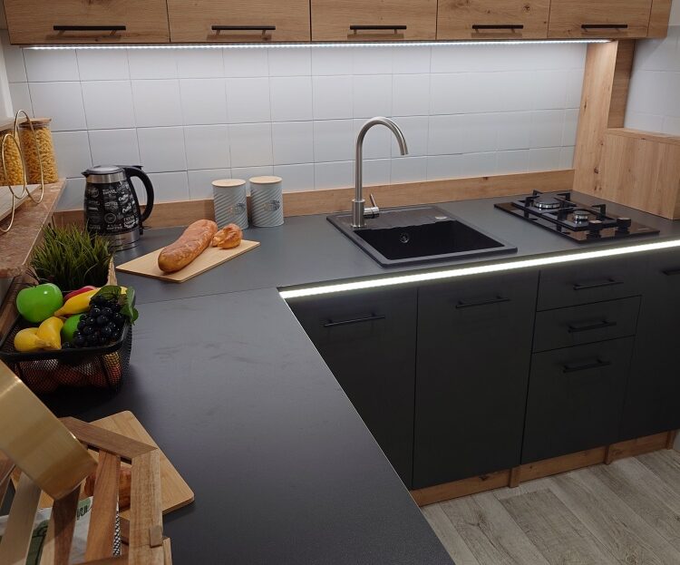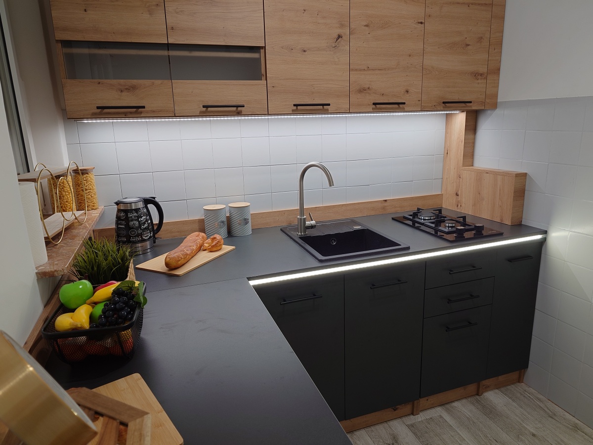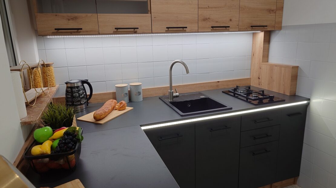 • Nowoczesna, piękna kuchnia z nową zabudową – pełna dziennego światła, elegancka