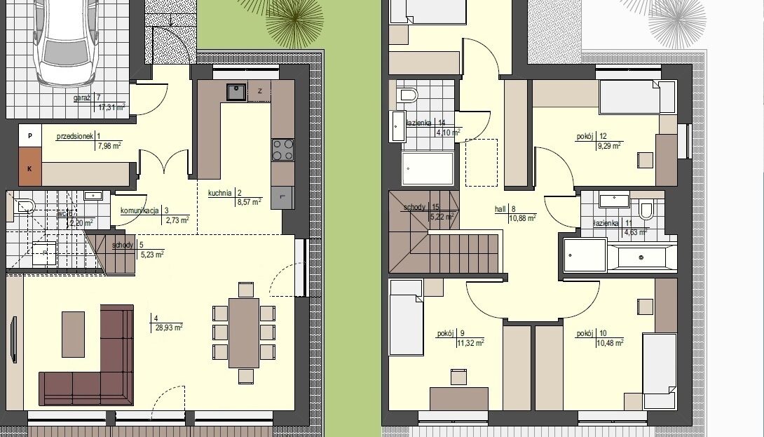 Ogromną zaletą tego domu jest jego skrajne usytuowanie, umożliwiające łatwy dostęp do tylnego ogrodu, a dodatkowe 6m działki z boku domu przekłada się na wyższy poziom prywatności i komfortu korzystania z tarasu oraz ogrodu.