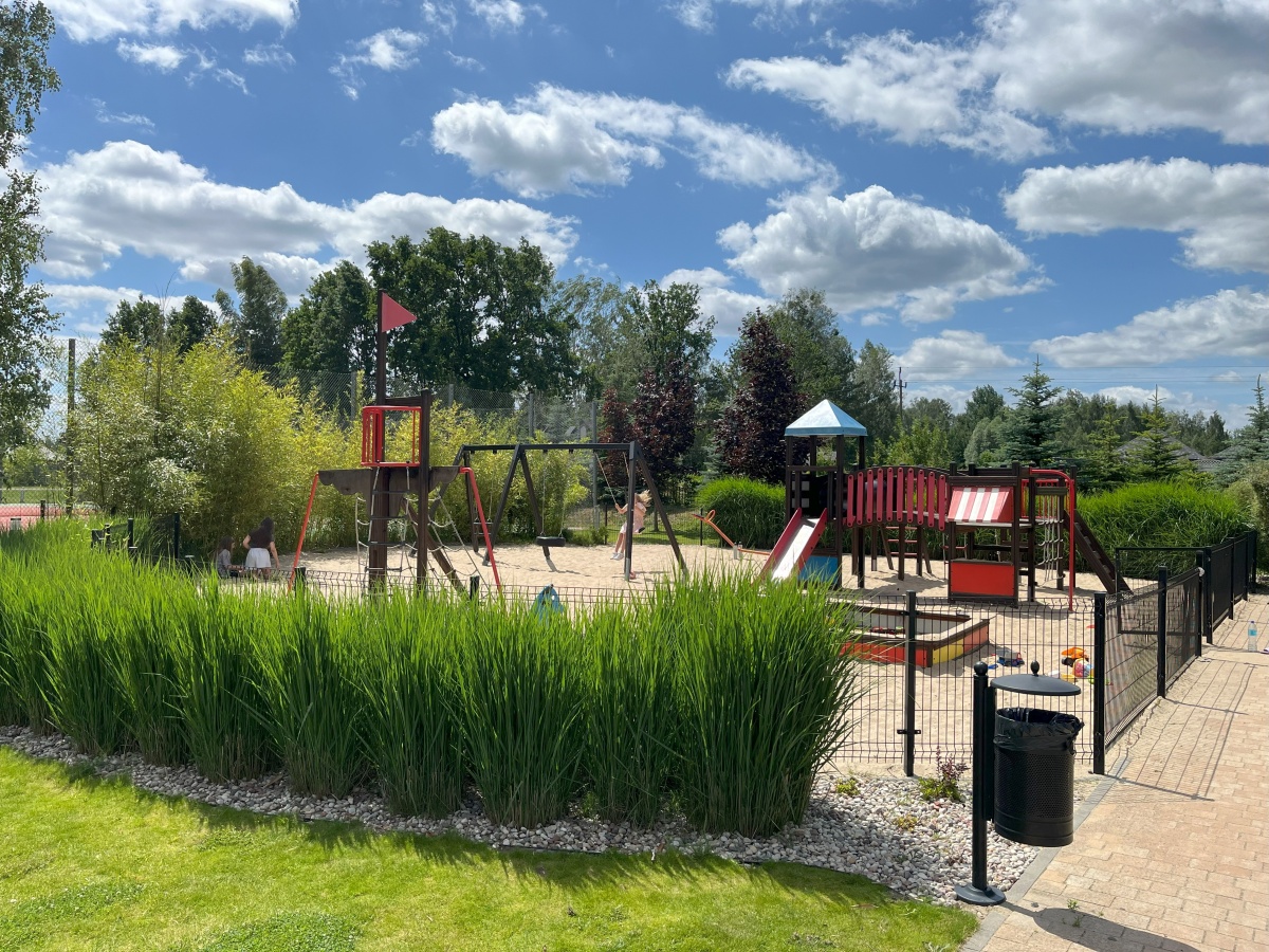 Dom położony jest na prestiżowym osiedlu Triton Country z własnym basenem, kortem tenisowym, placem zabaw, boiskiem do siatkówki oraz do piłki nożnej. Ta bogata infrastruktura sportowo-rekreacyjna osiedla pozwala po pracy i po szkole poczuć się jak na wakacjach. Osiedle leży tuż obok Lasu Młochowskiego z licznymi alejkami do biegania i jazdy na rowerze.