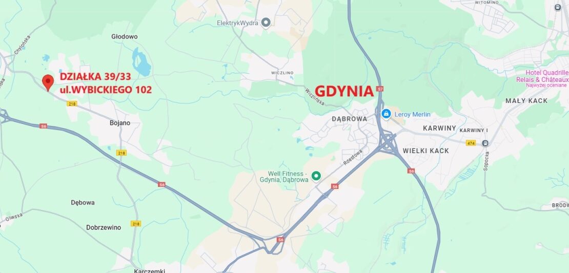 Działka nr 39/33 o powierzchni 2391 m2, położona jest w miejscowości Bojano przy ulicy Wybickiego, 8 km od obwodnicy Trójmiasta i 2,5 km od Węzła Koleczkowo trasy S 6. Miejscowość jest zlokalizowana w powiecie wejherowskim, gminie Szemud. Sąsiedztwo trasy S 6 zapewnia szybki dojazd do Trójmiasta.