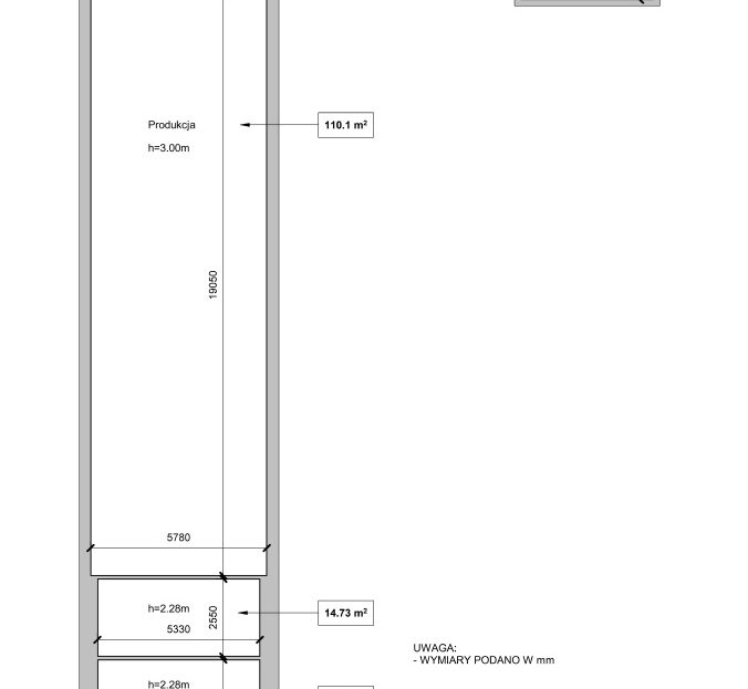 • Pomieszczenie główne hala 110m2, wysokość 3 m