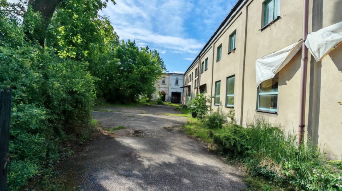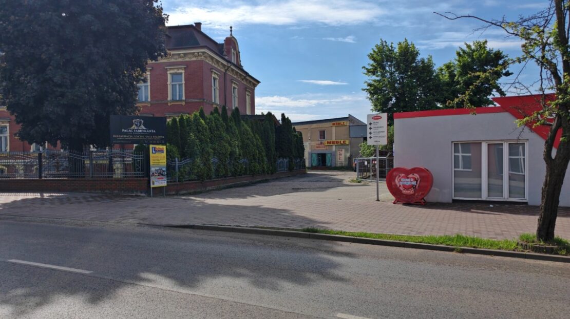 Teren działki jest ogrodzony i posiada miejsca parkingowe na co najmniej kilkanaście aut.