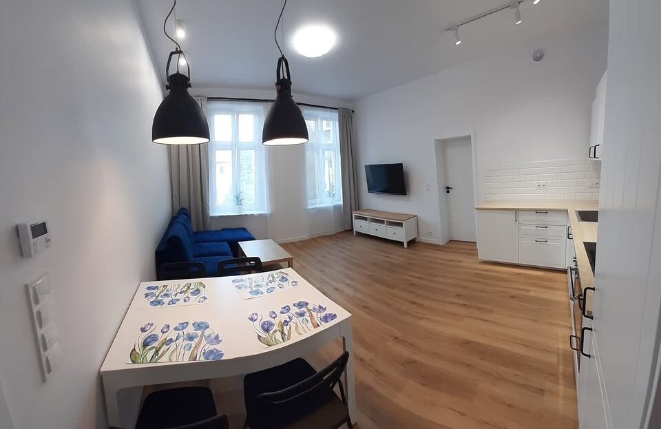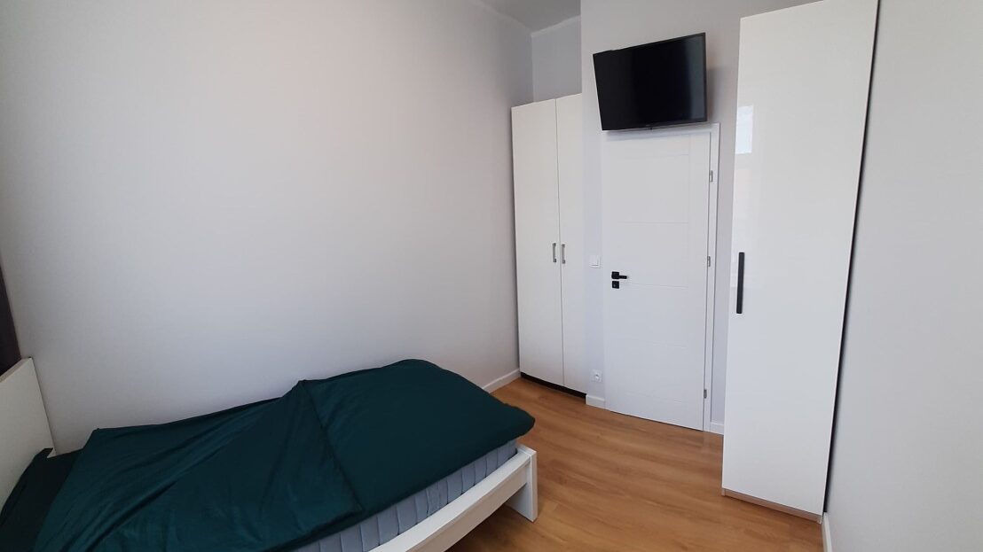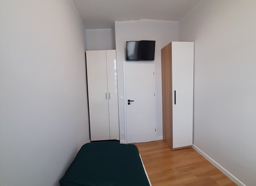 Do wspólnego korzystania z drugim pokojem pozostaje salon z aneksem kuchennym z Smart TV 55cali,korytarz i łazienka.