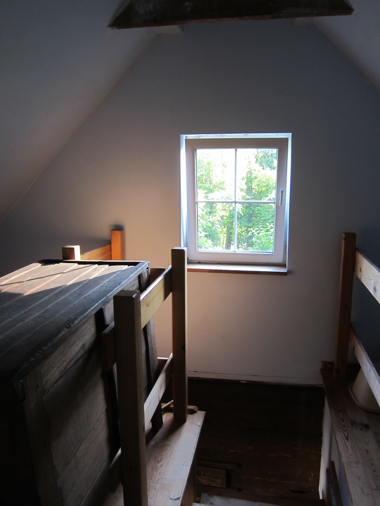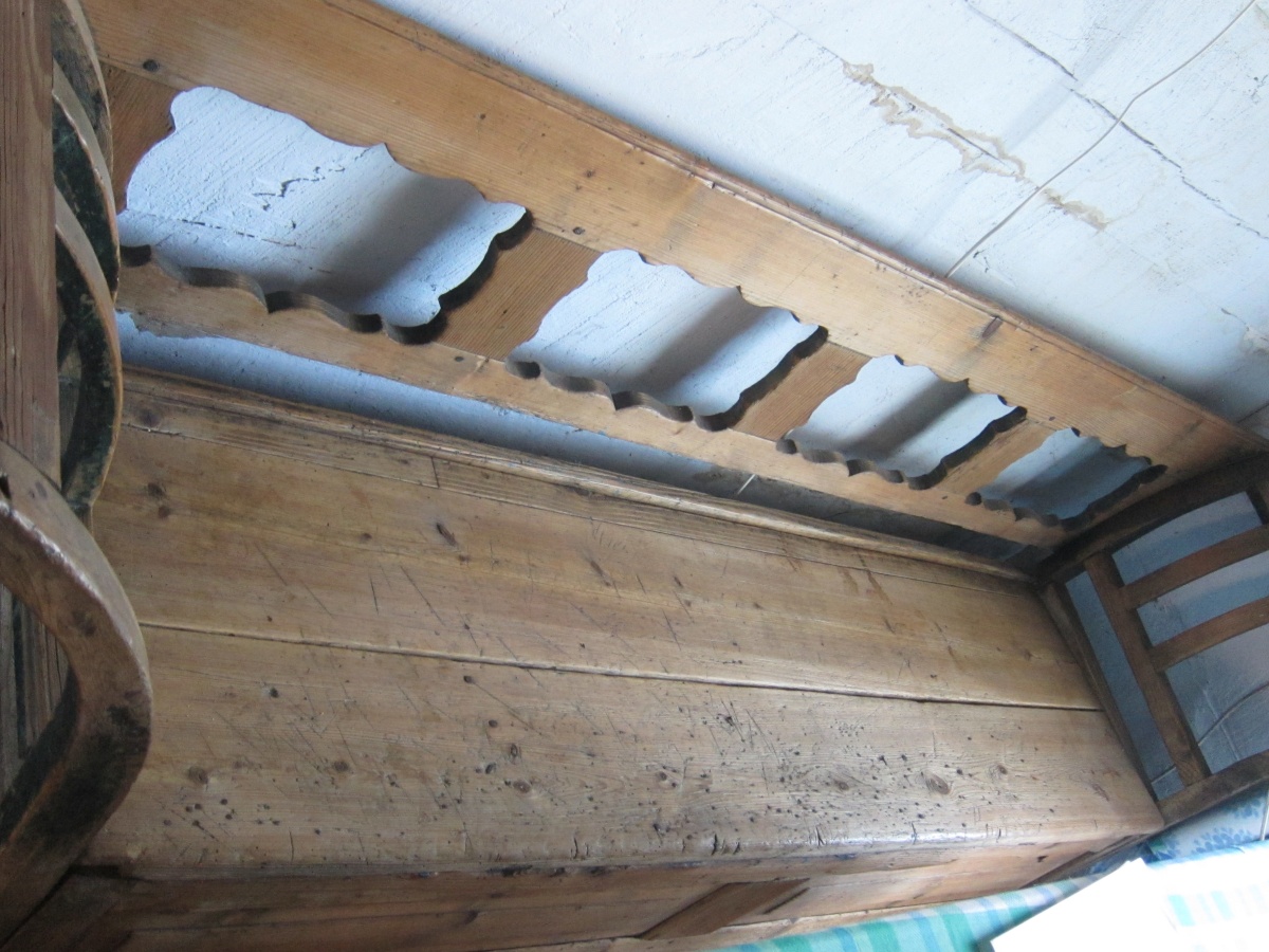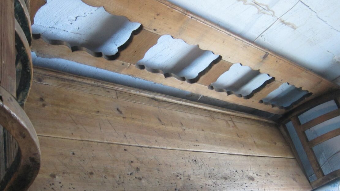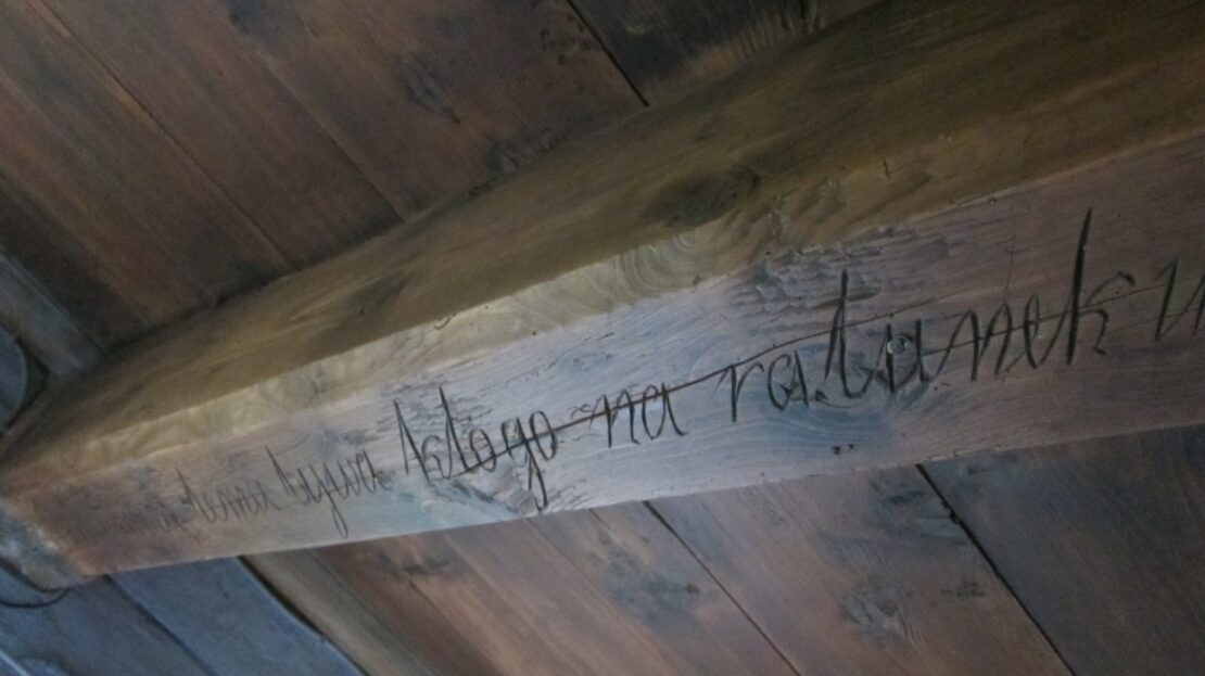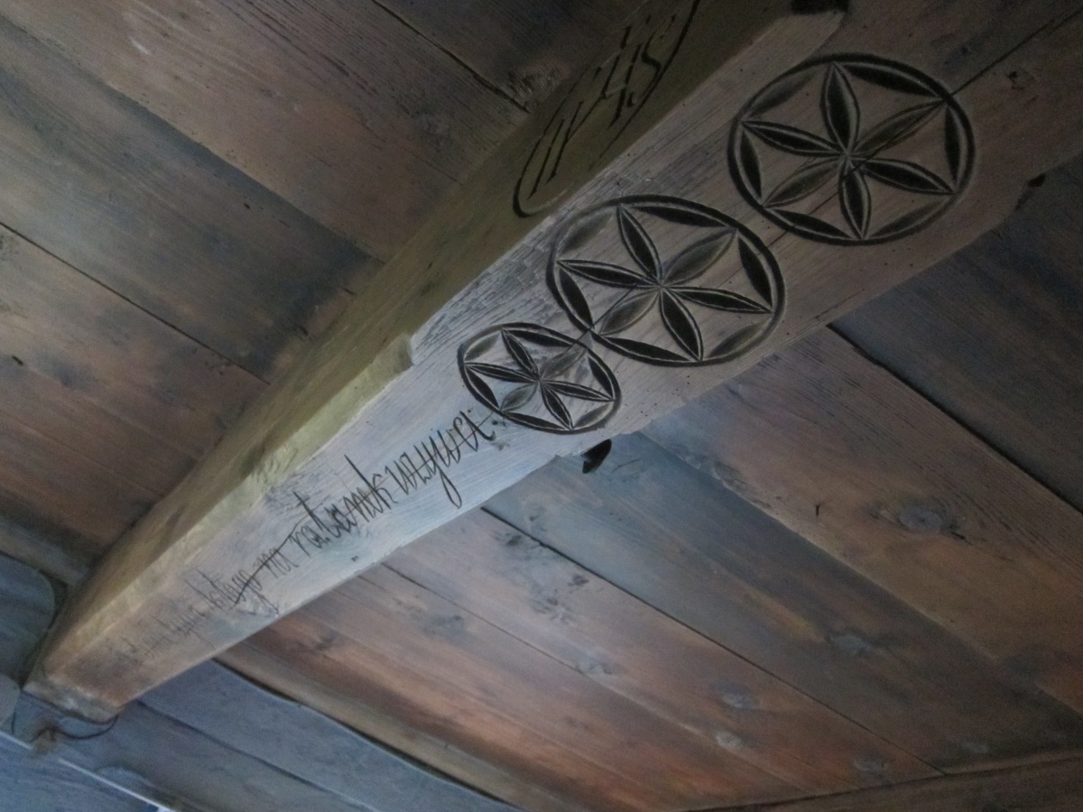 Parter domu oryginalne belki oraz powała z 1879 roku , na podłogach położono na nowo oryginalne stare deski.