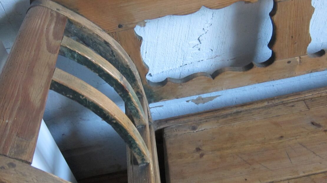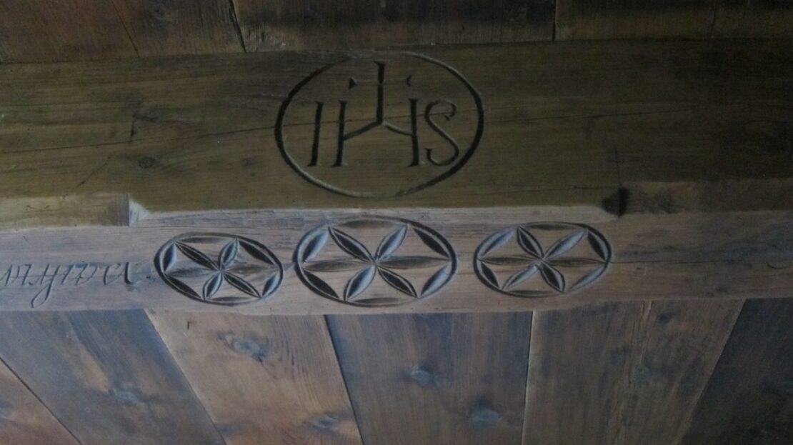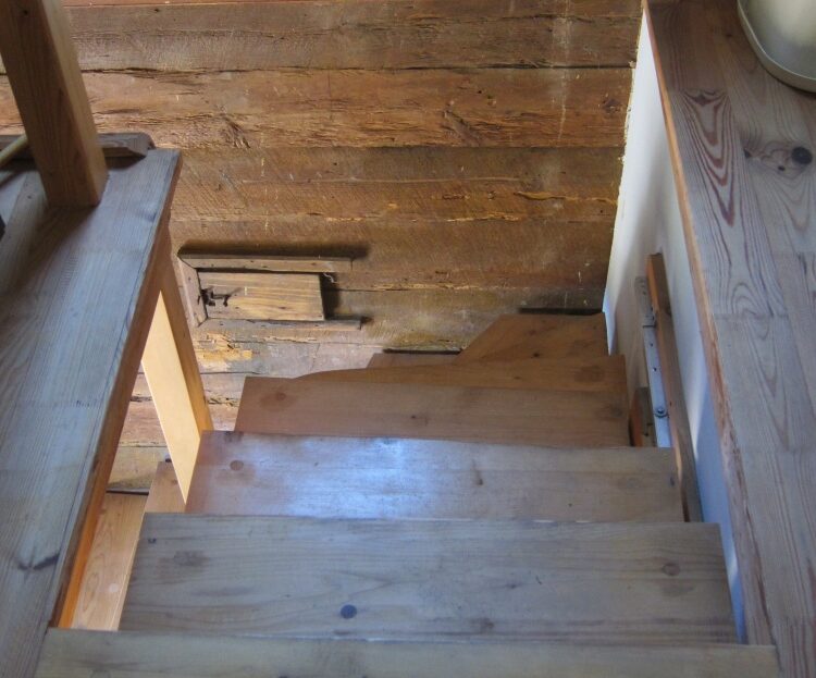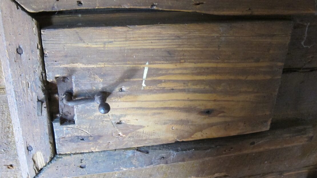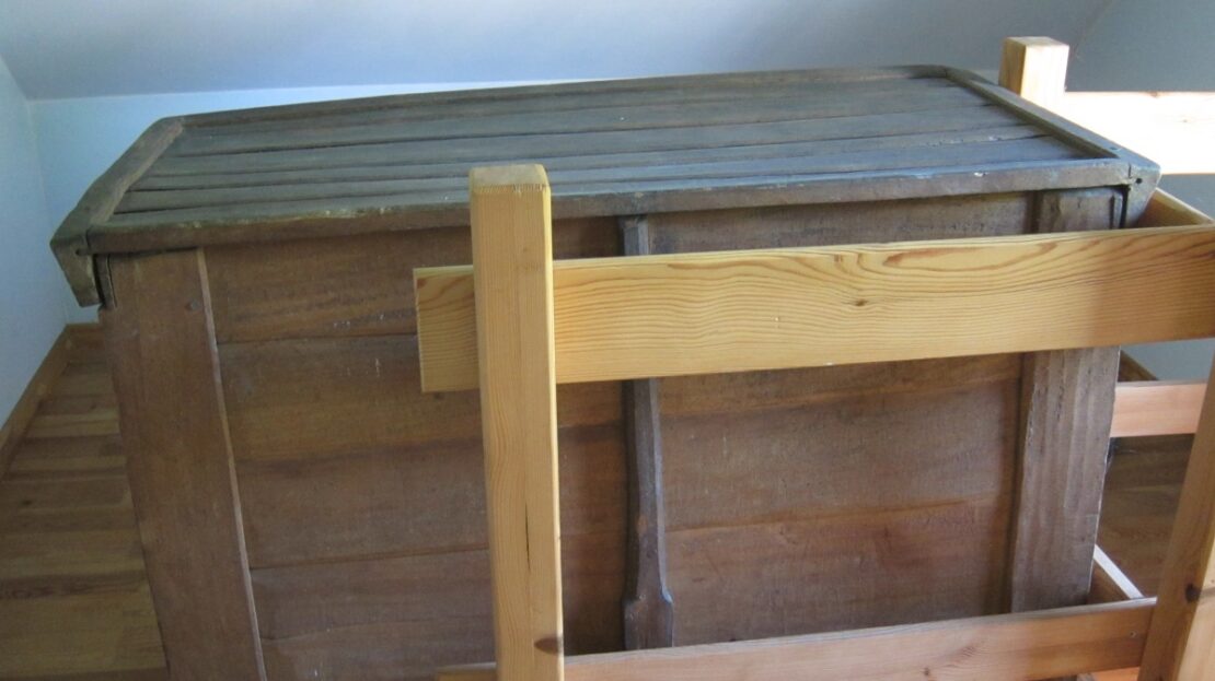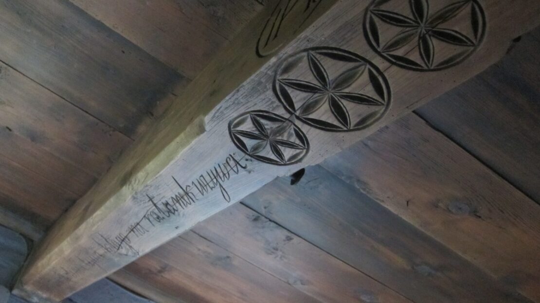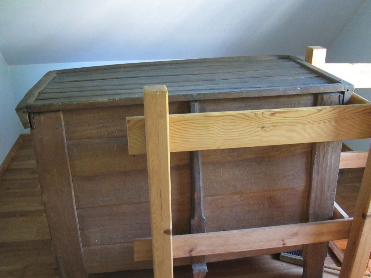 Parter domu oryginalne belki oraz powała z 1879 roku , na podłogach położono na nowo oryginalne stare deski.
