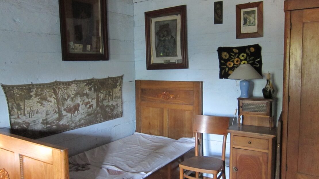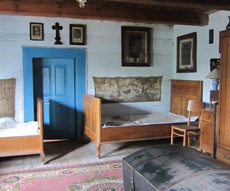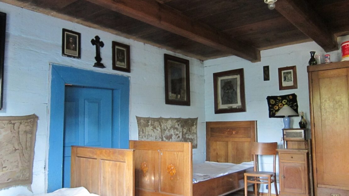 Parter orginalnie zachowana chlopska izba i kuchnia, rozbudowane piętro w poddaszu oraz łazienka w dawnej komorze .