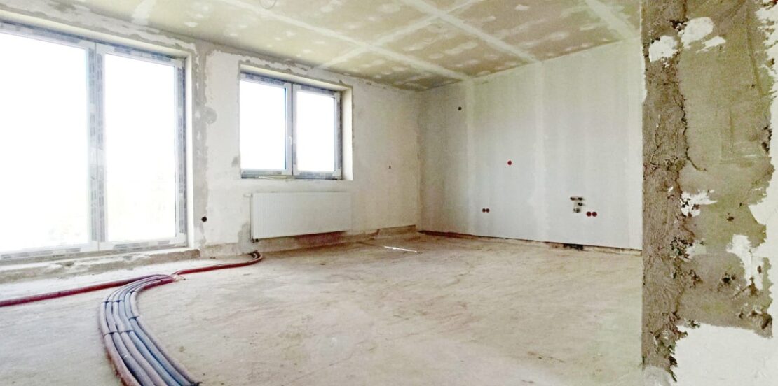 Podłogi: Na górze rozprowadzono instalacje C.O. i zamontowano grzejniki. Nie ma wylewki. To celowy zabieg – jeśli marzysz o ogrzewaniu podłogowym, to idealny moment, by je rozłożyć bez kucia. Jeśli wolisz grzejniki – robisz wylewkę i kładziesz podłogę. Decyzja należy do Ciebie.