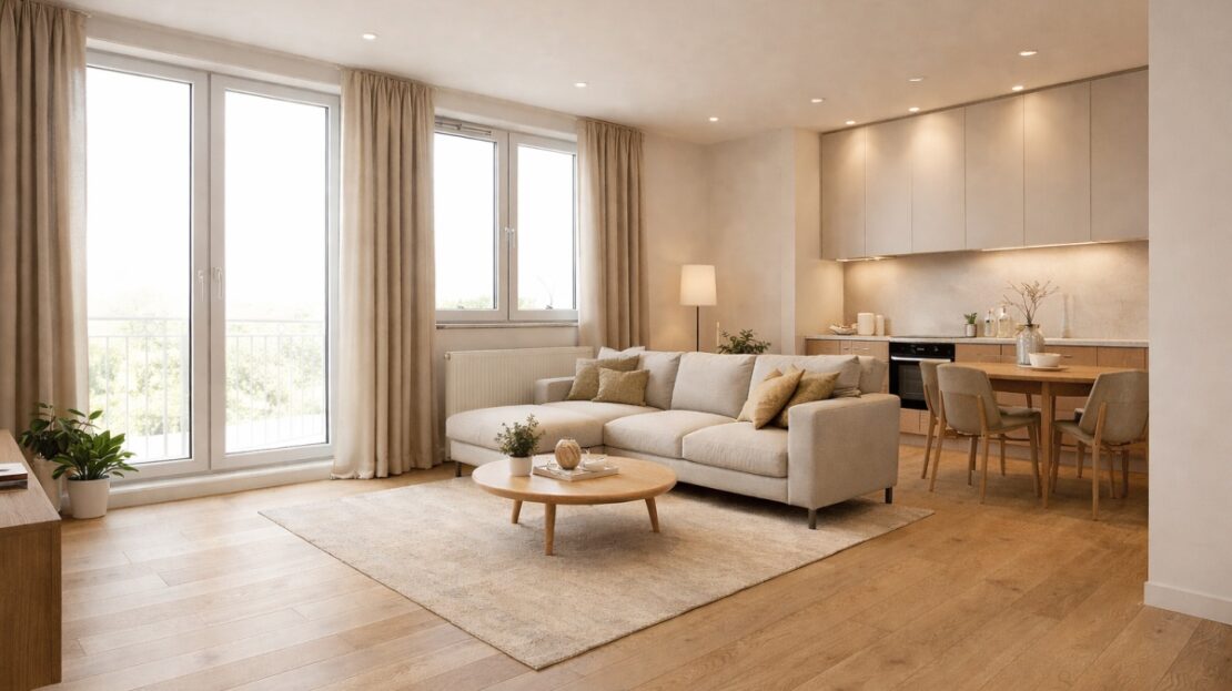 PARTER (Wysokość ok. 205 cm – Strefa "Chill & Biznes"): Ściany na dole są odświeżone i pomalowane na biało. Możesz tu wejść i układać panele. Niska wysokość pomieszczeń (205 cm) to tutaj atut – mniejsza kubatura oznacza błyskawiczne nagrzewanie i przytulność.