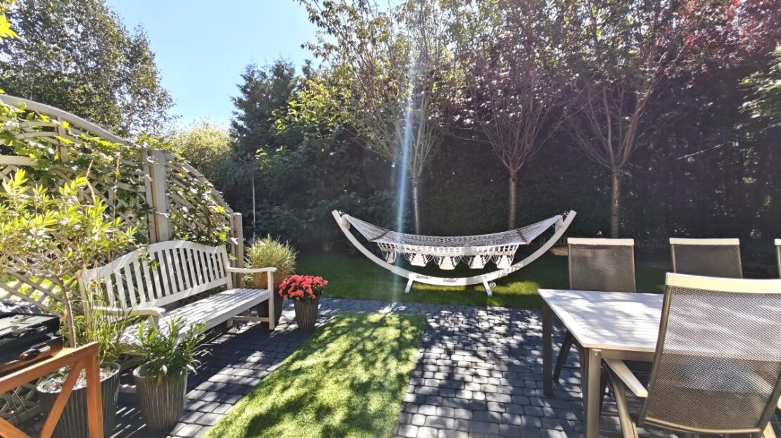 Ogród jest duży, pięknie zaaranżowany, zadbany i pomimo zabudowy bliźniaczej zapewnia pełny komfort. Unikalne zamknięte osiedle, oświetlone, z bramą wjazdową. Jest to idealne miejsce do wychowywania dzieci oraz regeneracji po pracy.