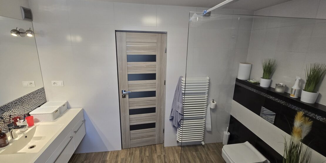 Możliwość wykonania osobnego wejścia przez garaż – idealne przy prowadzeniu działalności bez ingerencji w część mieszkalną.