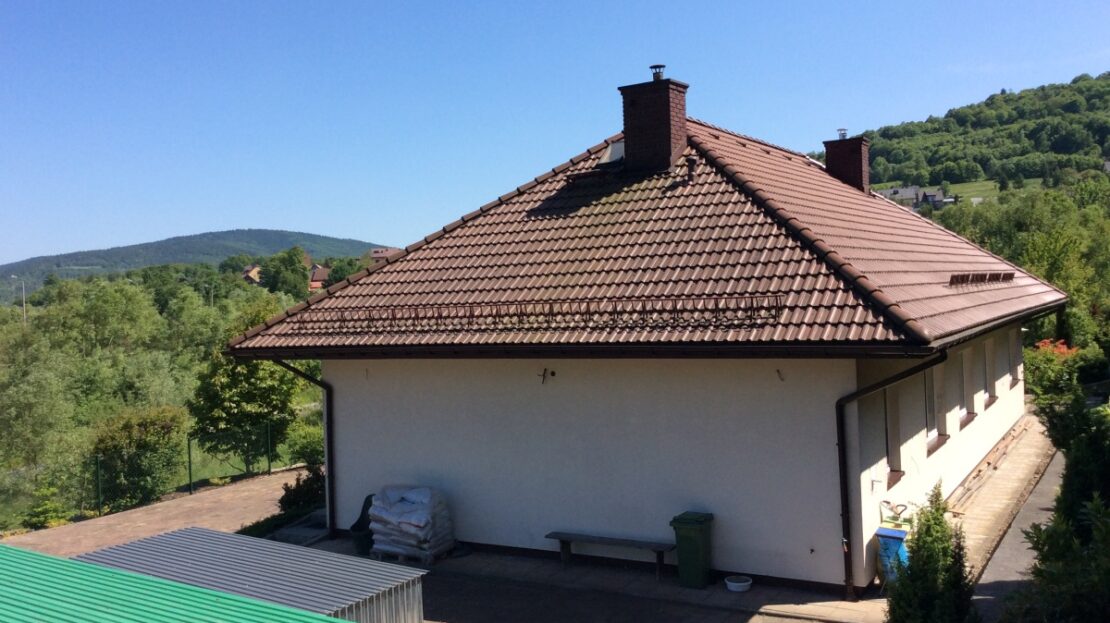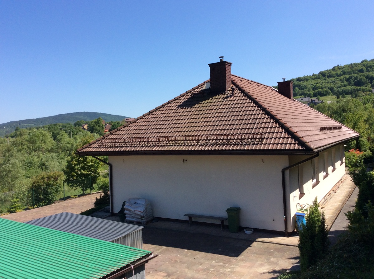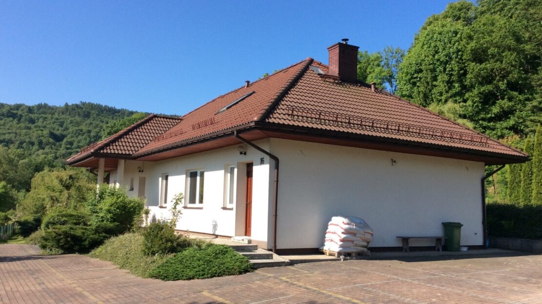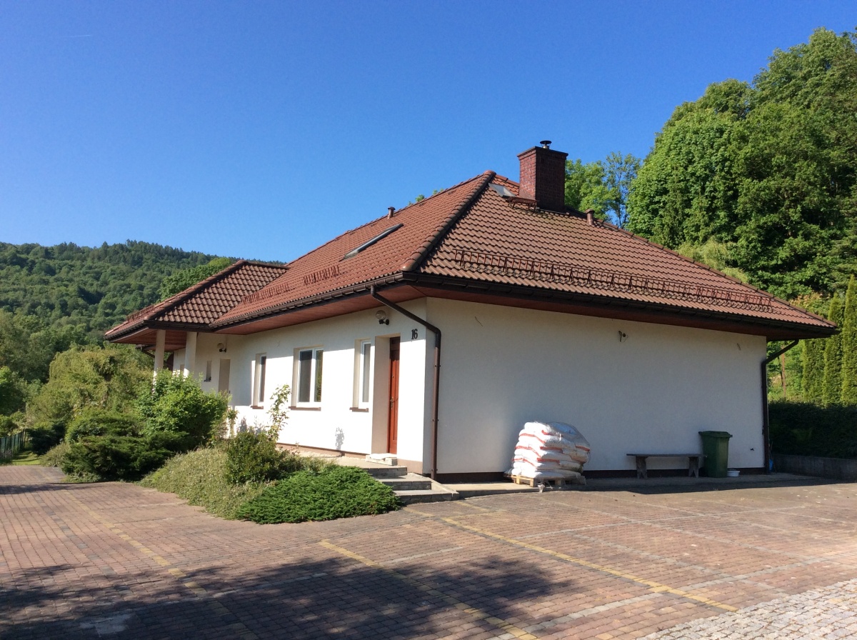 Dom w gminie Zembrzyce, parterowy, niepodpiwniczony z użytkowym poddaszem, kryty dachówką. Powierzchnia parteru 146 m2, powierzchnia poddasza 143 m2. Dom ma wymiary około 20m na 10m.