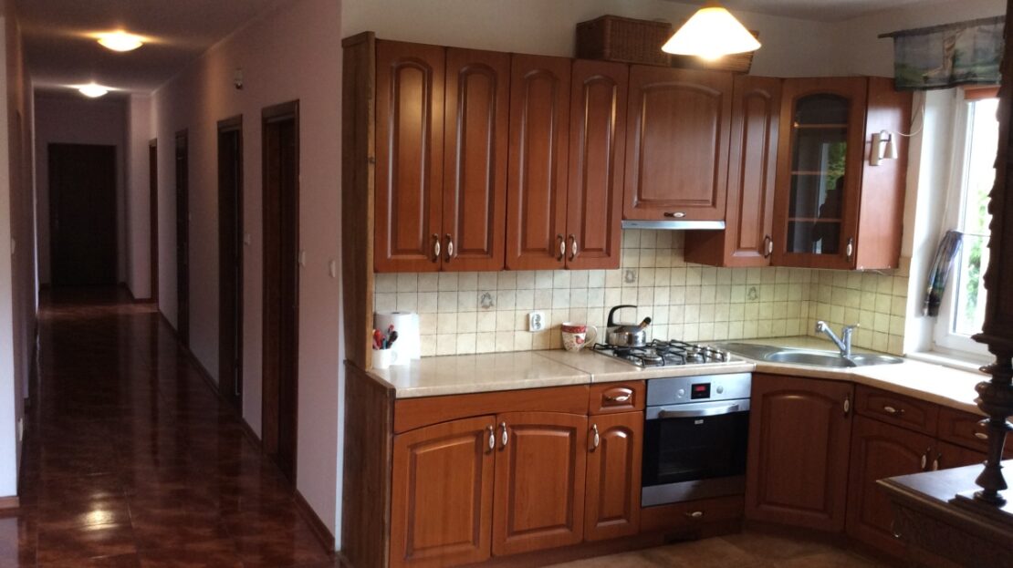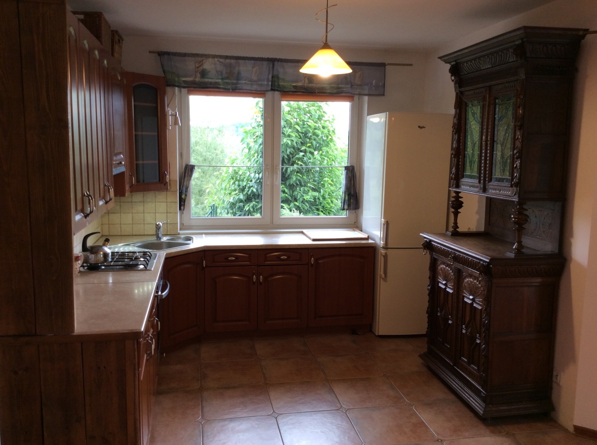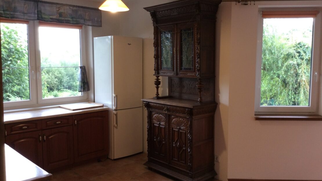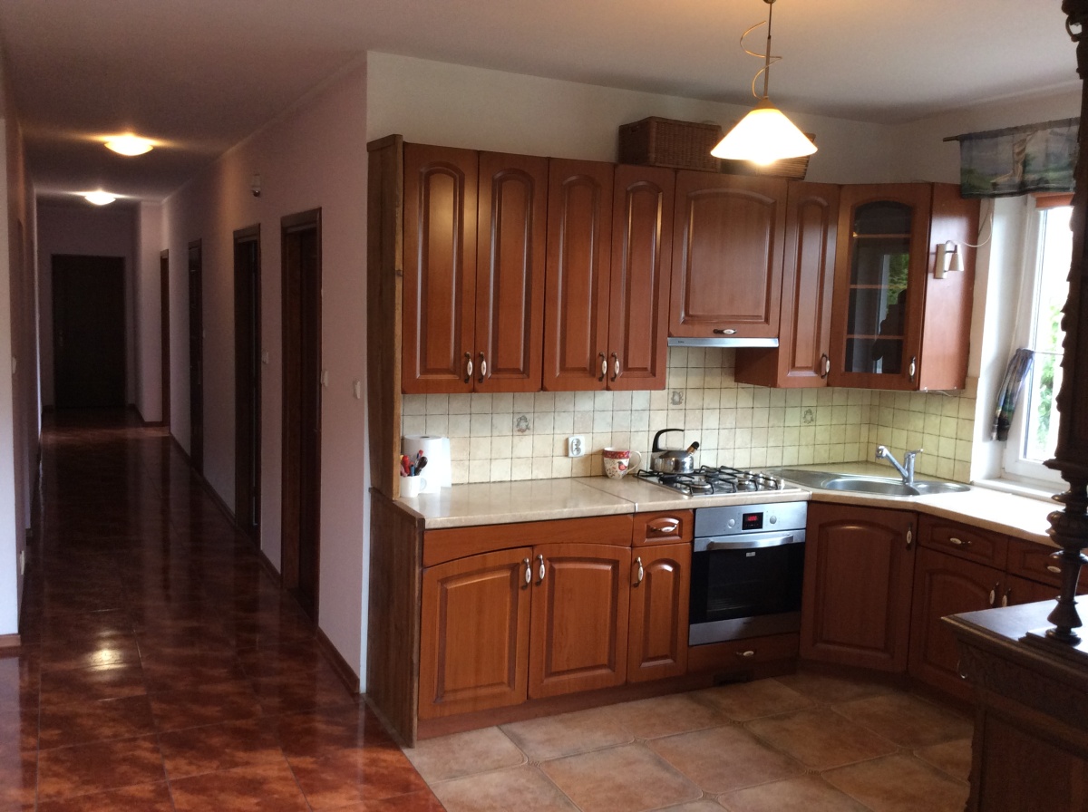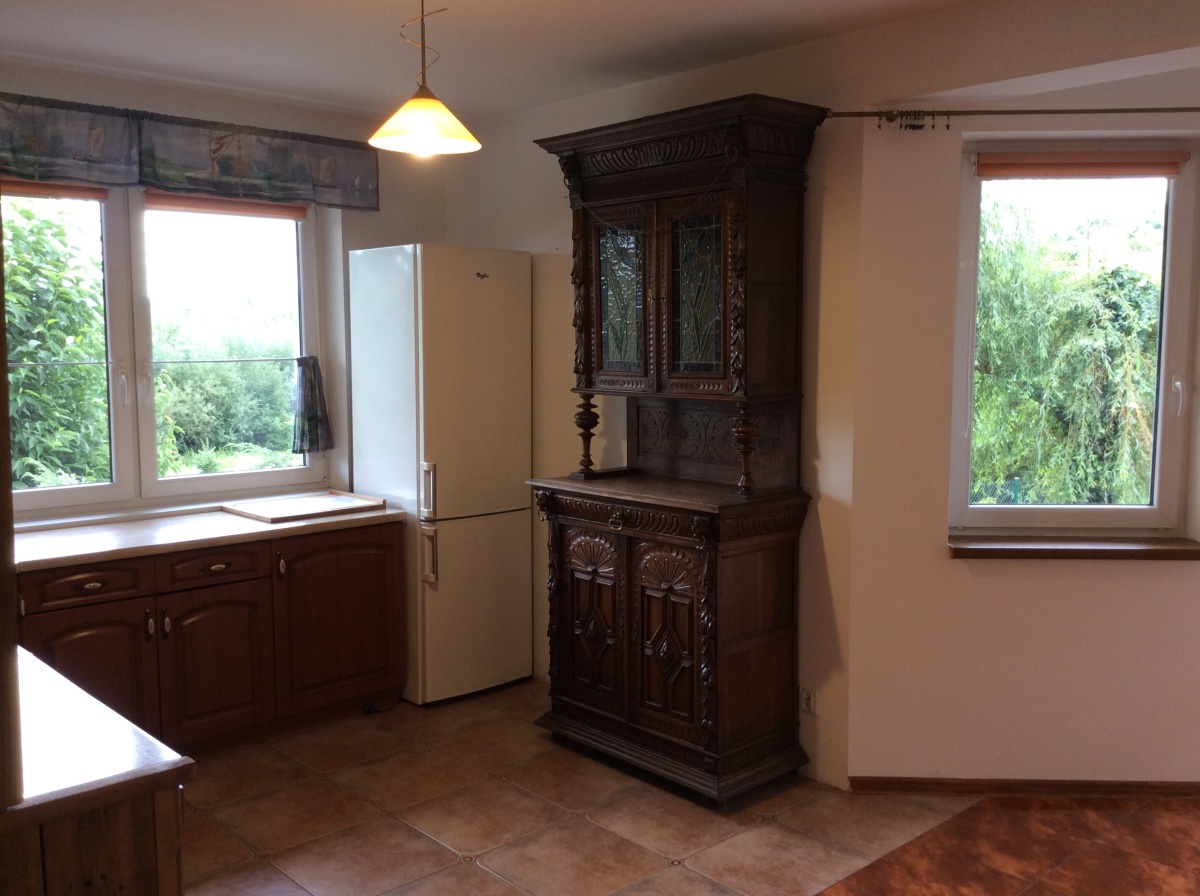 Kuchenka na gaz z butli z elektrycznym piekarnikiem, pralka, lodówka, odkurzacz centralny (również na poddaszu), w całym domu płytki, w 4 sypialniach panele. W łazience wanna i osobny prysznic, a w kotłowni głęboki brodzik z siedzeniem. 2 ubikacje.