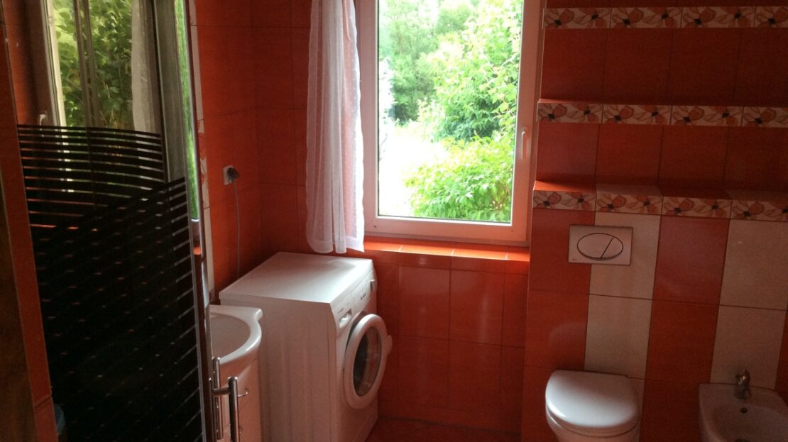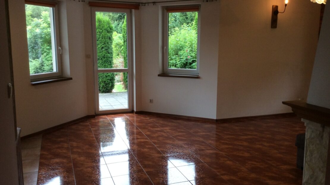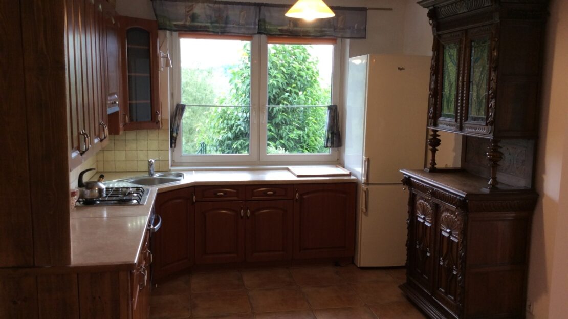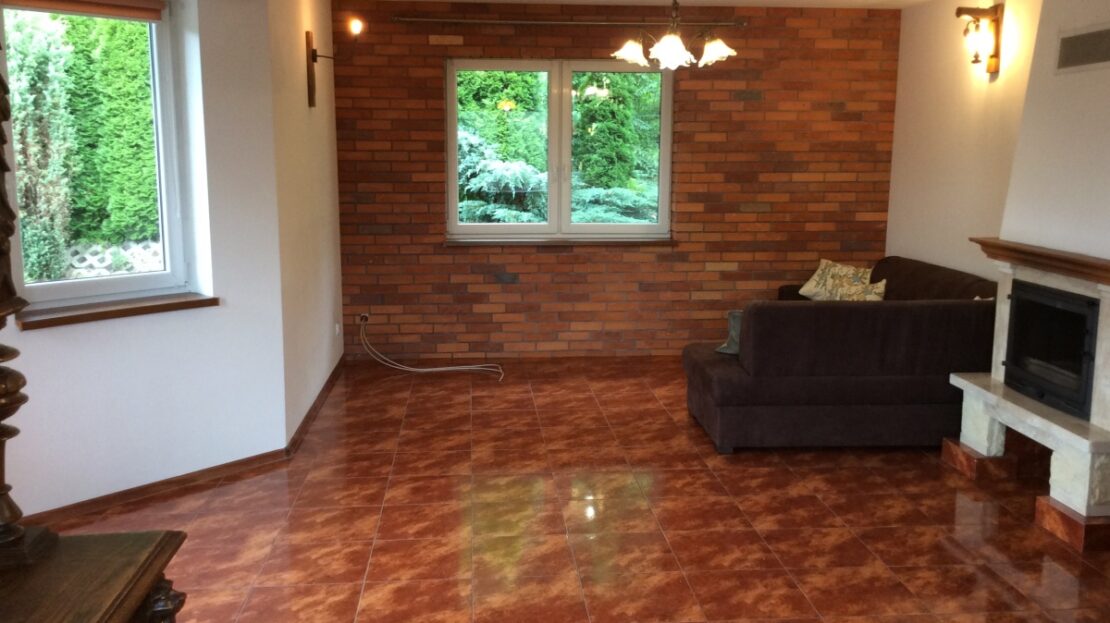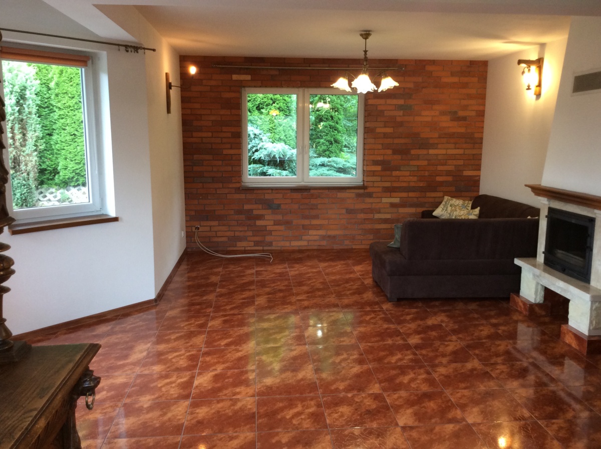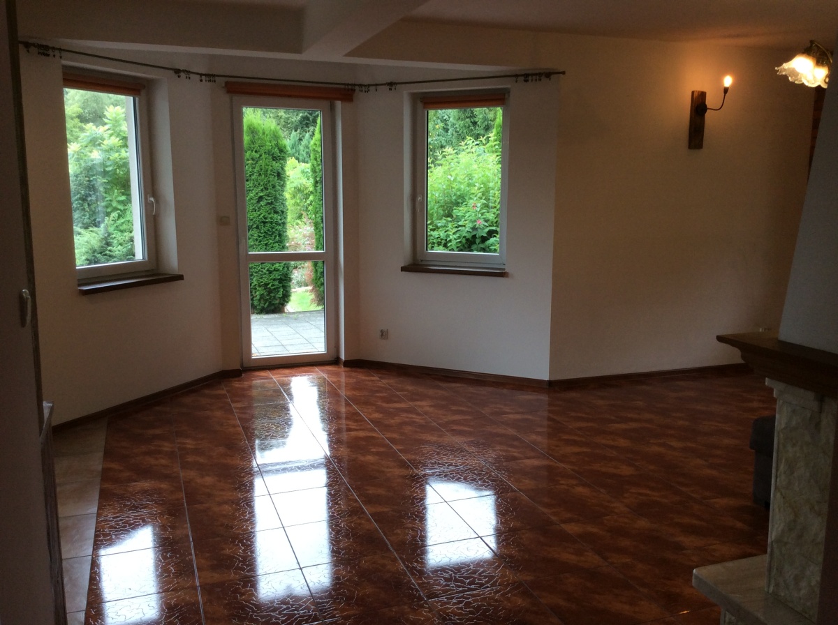 Kuchenka na gaz z butli z elektrycznym piekarnikiem, pralka, lodówka, odkurzacz centralny (również na poddaszu), w całym domu płytki, w 4 sypialniach panele. W łazience wanna i osobny prysznic, a w kotłowni głęboki brodzik z siedzeniem. 2 ubikacje.