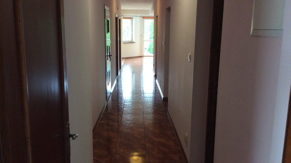 4 sypialnie, salon z jadalnią i kuchnią około 36 m2, spiżarnia, łazienka, kotłownia z drugą łazienką, sień główna, druga sień z wejściem do kotłowni, poddasze.