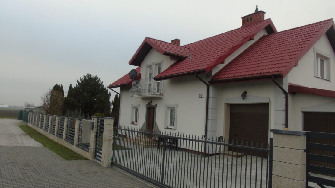 Dom murowany z pustaka ceramicznego pokryty blachą , stolarka okienna PCV , ocieplenie styropian wraz z wyprawą oraz elementami ozdobnymi . Nowe ogrodzenie z wymianą kostki .