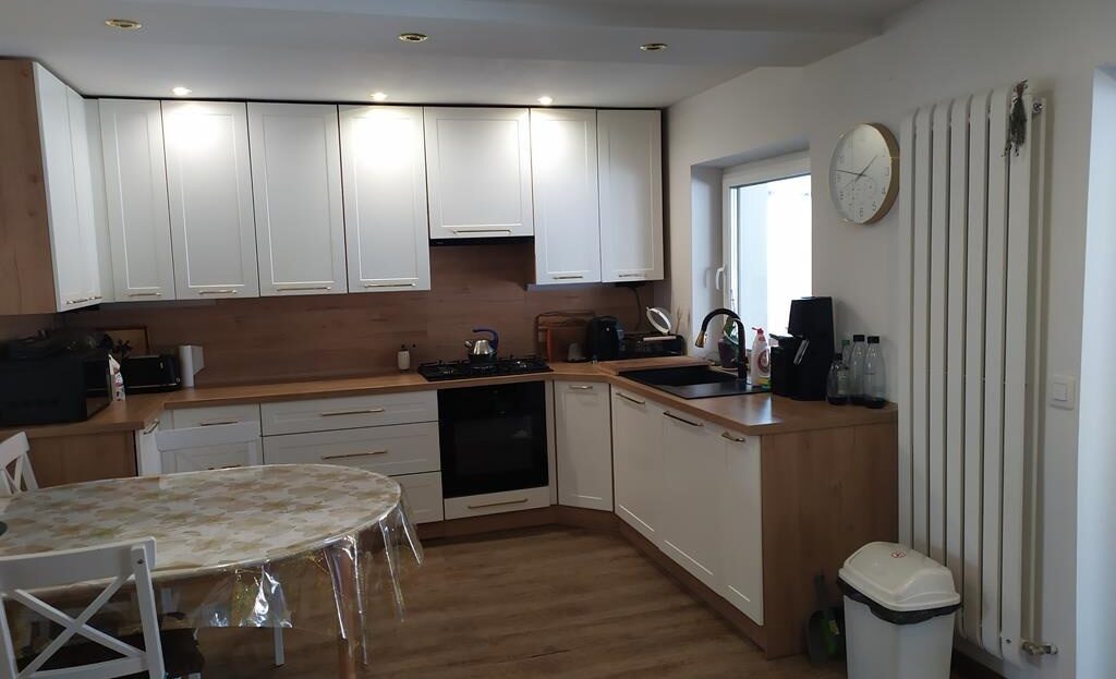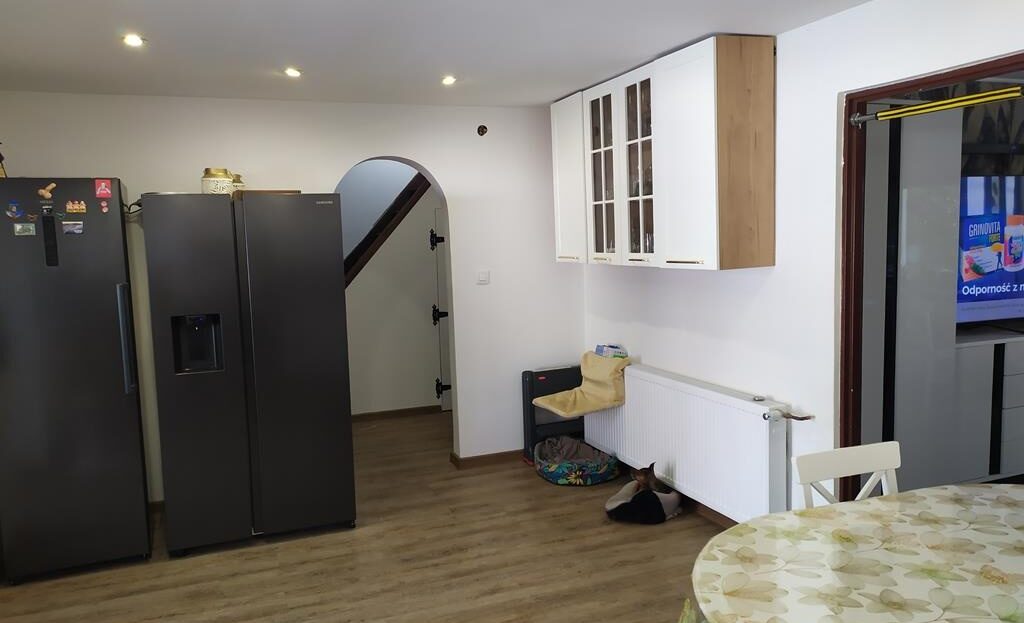 Ocieplony styropianem 15/20 cm grubości. Nowy dach pokryty blachodachówką, ocieplony pianą Pur o grubości 28 cm. Nowe posadzki pokryte panelami winylowymi. Nowe okna trzyszybowe i ciepłe drzwi. Nowa hydraulika i elektryka, nowe grzejniki o bardzo dużej powierzchni ze względu na ekonomię ogrzewania pompą ciepła.